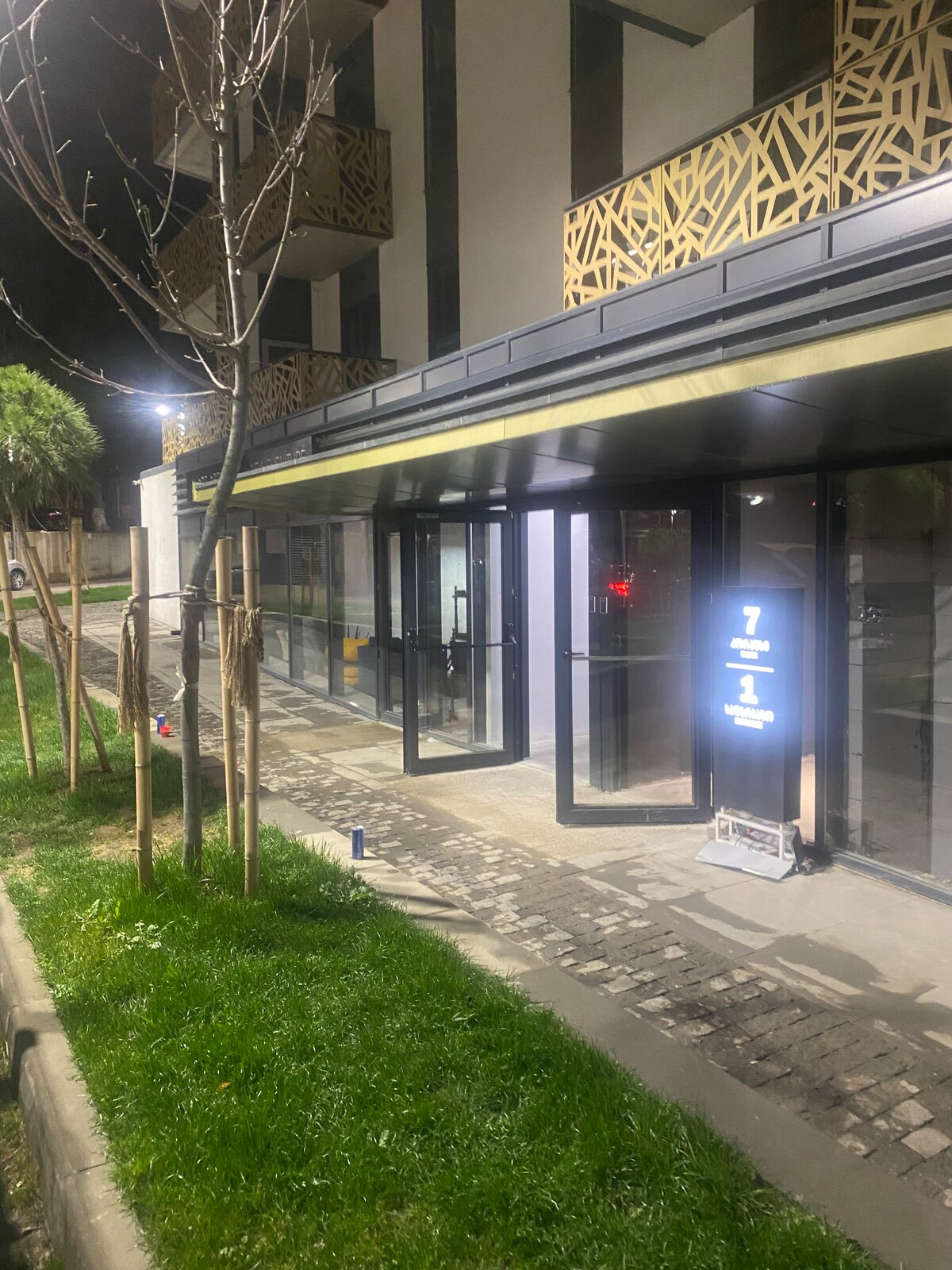 Zona clădirii M2 La Marshal Gelovani (vizavi de Agro-hub) Rezervă unul dintre cele 3 apartamente din zona rezidențială M2 (apartament verde sau albastru la etajul 7 sau apartament la etajul 8) și locuiește confortabil într-un apartament de tip studio, unde ai cel mai înalt confort, un pat de lux, un dormitor separat, un balcon și toate aparatele necesare care îți fac viața confortabilă și plăcută. Televizorul, mobilierul și aparatele situate în apartament oferă apartamentului o categorie de lux.