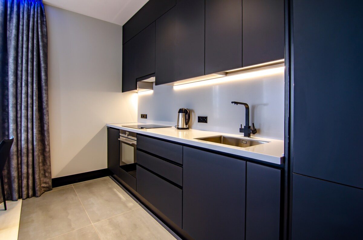 Cozy hotel room type apartment in a residential building. Luxury studio apartments located in the heart of the capital, in close proximity to metro, entertainments and shopping centers. Rooms are equipped with new technique and furniture. Our designers have added their unique to this apartments.