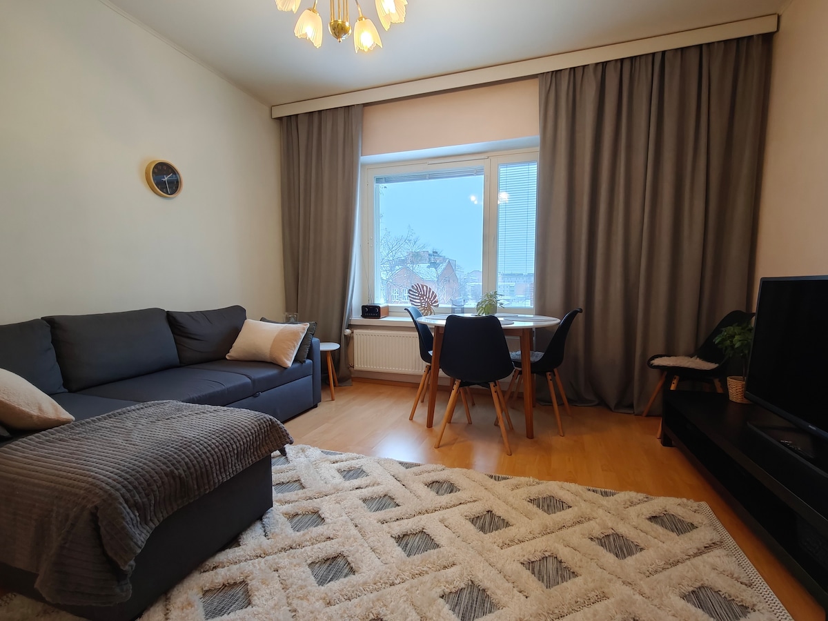 Apartamentul este un apartament confortabil, compact, cu un dormitor, într-o zonă rezidențială liniștită, la aproximativ zece minute de mers pe jos de centrul orașului Kouvola. Dormitorul are un pat dublu, iar canapeaua extensibilă din living are spațiu pentru doi oaspeți. Bucătăria deschisă a apartamentului este bine echipată și este perfectă pentru șederi mai lungi. Apartamentul are o saună și un balcon mobilat vitrat, care este confortabil să se răcească după saună. Există loc pentru parcare gratuită de-a lungul străzii.