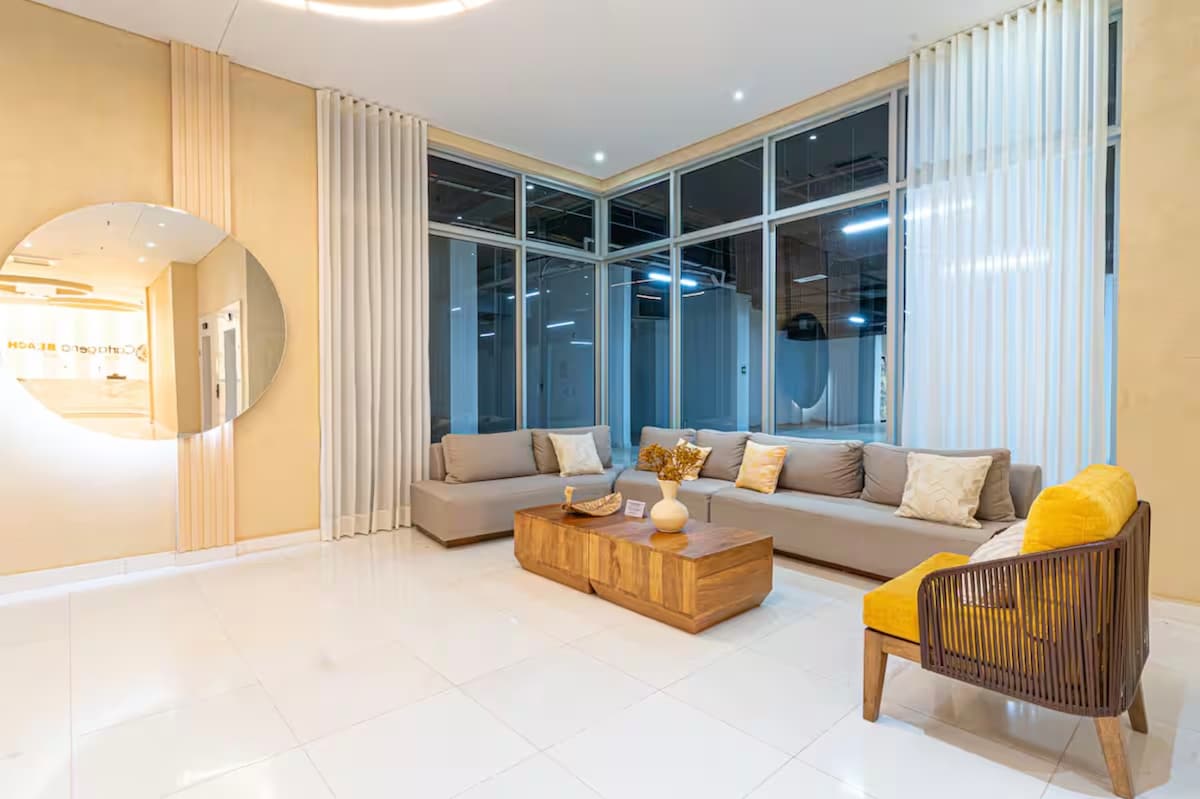 Apartament exclusivist într-o clădire la malul mării, cu acces direct la nisip. La doar 7 minute de centrul istoric al Cartagenei, perfect pentru a te bucura de Caraibe. Dormitor cu pat matrimonial + canapea extensibilă (180x110 cm) în living 🛁 2 băi complete 🌅 Balcon privat cu hamac 🏊 2 piscine (pe malul mării), jacuzzi și saună 💪 Sală de fitness, zonă pentru copii și parcare privată Wi-Fi 📶 de 300 Mbps – ideal pentru lucrul de la distanță 🍽️ Aproape de restaurante, baruri și supermarketuri Pătuț pentru copii disponibil la cerere