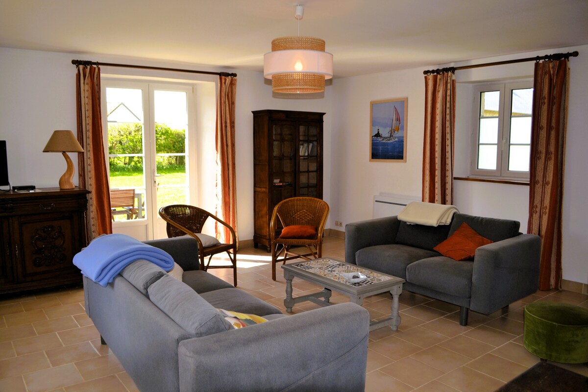 Casă de piatră de 100 m2 cu fațadă sudică situată pe terenul unei proprietăți de familie, aproape de plajele de debarcare. La parter, un living mare cu aragaz cu lemne (furnizat), bucătărie echipată, sală de duș, toaletă, spălătorie; Pe primul loc, un dormitor matrimonial cu pat pentru copii, o cameră cu două paturi de o persoană, o baie, 1 toaletă; Pe de altă parte, un dormitor cu pat dublu. Înconjurat de o grădină privată de 2000 m2.