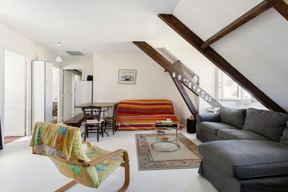Bine ai venit la Condécourt, un mic sat liniștit de țară, care depinde de Parc Naturel Régional du Vexin, la 15 minute cu mașina de Cergy Pontoise (RER la Paris). Îți urăm bun venit în casa noastră separată, unde îți oferim parterul nostru, inclusiv o intrare dotată cu o masă de relaxare adiacentă băii, un dormitor și o mică zonă în aer liber. Cu alte cuvinte, întregul spațiu de la parter îți aparține, vei fi liniștit.