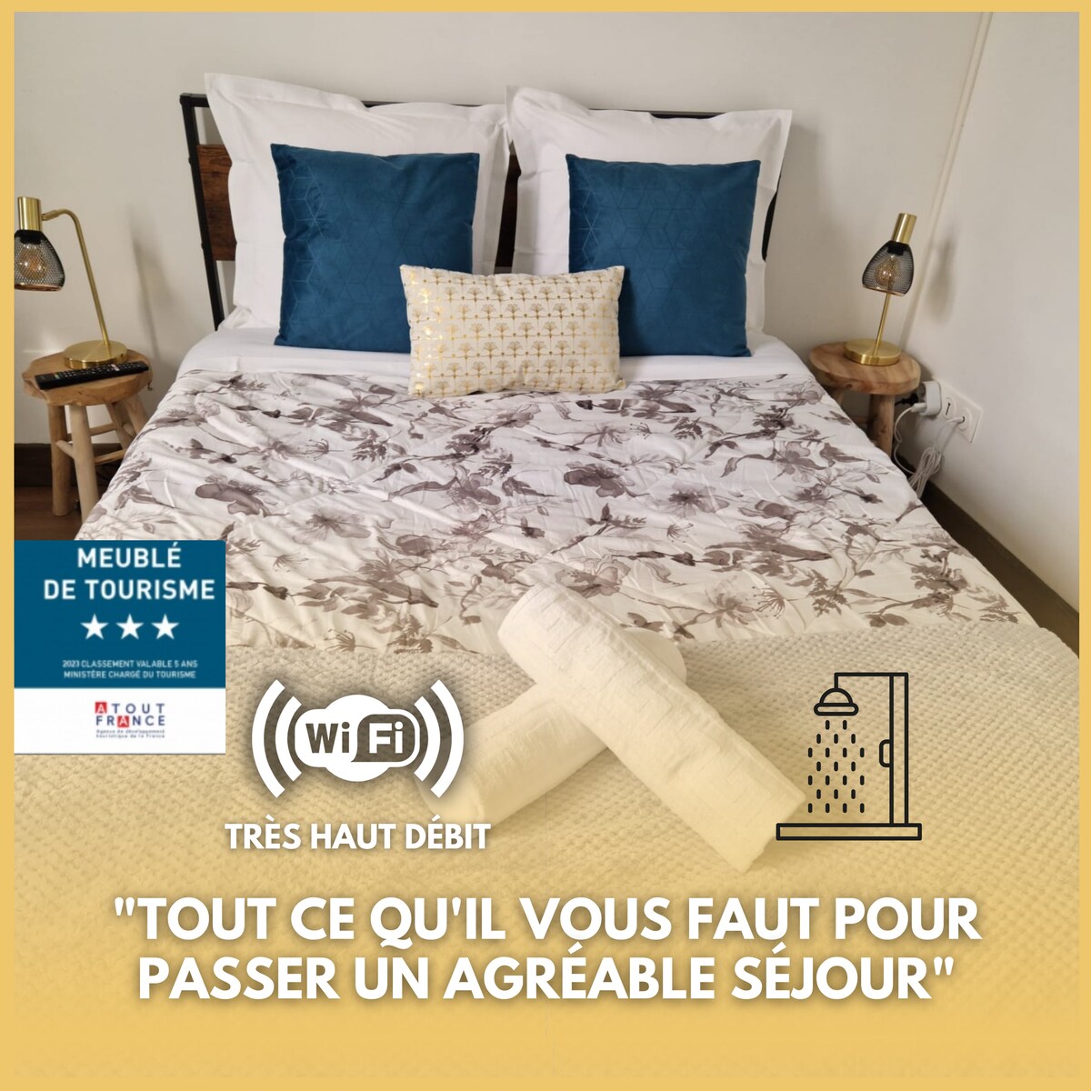 Vă urăm bun venit la acest apartament F2 (54m²) în inima cartierului istoric Blois, cu vedere directă la vestiarele castelului. (5 minute de mers pe jos de gară) Fă-ți bagajele în această unitate de cazare modernă și liniștită, cu o mulțime de facilități. (TV, Wi-Fi, bucatarie echipata, cabina de dus, dressing, pat umbrela...) Acces direct la numeroase obiective turistice, magazine, restaurante și parcări publice.
