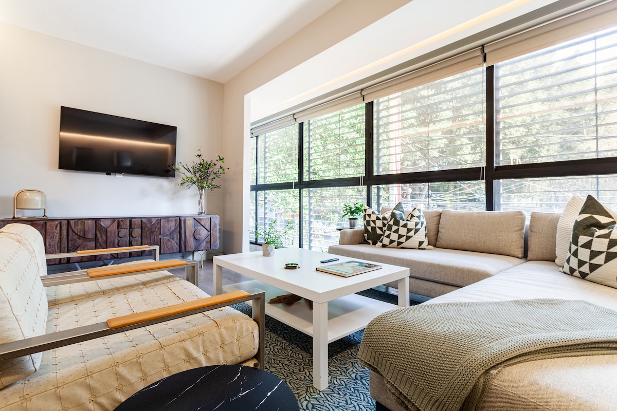 Apartament „nativ”, un spațiu nou, într-un stil mexican contemporan, într-o atmosferă de pace, liniște și securitate. Are o terasă dotată cu grătar, șemineu și o mică sală de mese în aer liber. Cu una dintre cele mai bune priveliști ale orașului, poți vedea cele mai emblematice clădiri din oraș, cum ar fi Castelul Chapultepec, printre altele, are tot ce îți trebuie și multe altele pentru a-ți face experiența unică. La câțiva pași vei găsi cele mai bune restaurante și baruri din oraș.