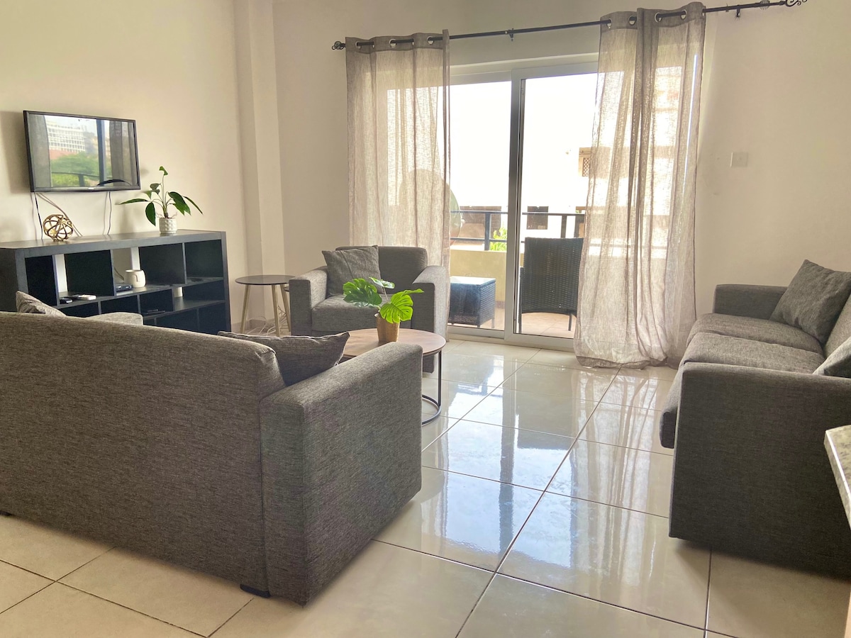 Dorești să fii revitalizat și reenergizat pentru a înfrunta lumea ? Acest paradis este gata pentru tine în Cantonments. Accesul facil la cartierul de afaceri, cumpărături, mese și divertisment. Acest apartament spațios de pluș este la doar 6 minute de fâșia de plajă, inclusiv plaja Alora, La Palm Royal și Labadi Aer condiționat, piscină, sală de gimnastică, Wi-Fi, liniște, toate asigurate de securitate non-stop. 2 minute de mers pe jos până la un minimart non-stop. Parcare securizată gratuită. Birou de concierge la dispoziția ta Restaurante accesibile în termen de 2 până la 5 minute