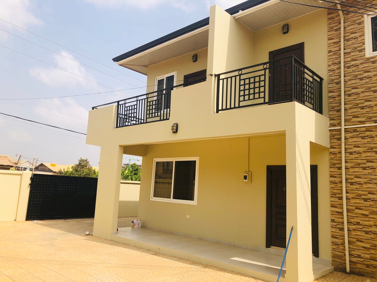 Acest apartament nou mobilat este situat în imediata apropiere a atracțiilor majore: 1,4 Km de plaja Labadi, 4 km de Labone/Cantonment, 7 Km de aeroport. Apartamentul este foarte spațios; suprafața podelei de 140 mp (1500 mp) cu 2 balcoane, bucătărie complet utilată, inclusiv mașină de spălat/uscător automat de rufe. Loc de parcare disponibil, cartier sigur plus agent de pază pentru confort total. Există, de asemenea, un îngrijitor în clădire pentru a ajuta cu bagajele și comisioanele de bază. Fără petreceri!, Fără fumat în interior!