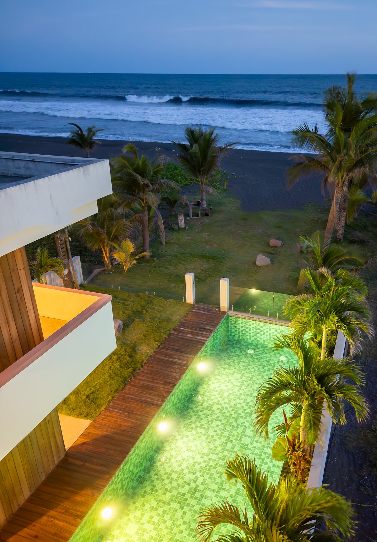 Bucură-te de natură și confort în această casă modernă de pe plajă din El Paredón. Frumos decorat cu o zonă de living confortabilă, vedere la ocean, dormitoare spațioase, aer condiționat și detalii de inspirație marină, oferă o senzație relaxată, dar elegantă. Relaxează-te lângă piscina infinită sau pe balcon în timp ce privești apusuri de soare uluitoare. Privată și liniștită, dar la doar 5 minute de magazine, restaurante și scena de surf, este ideală pentru familii sau prieteni care caută un refugiu liniștit pe coastă.