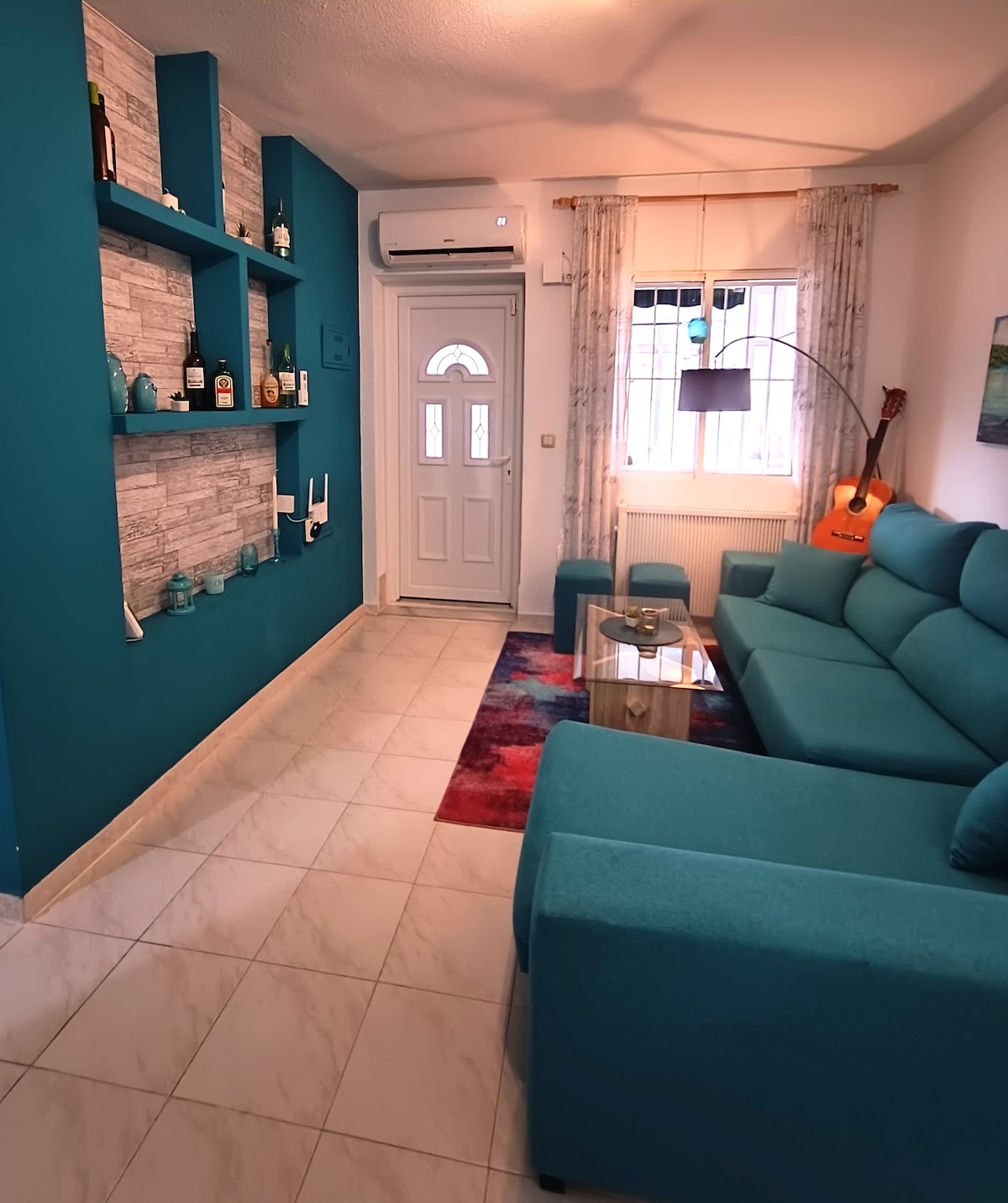 Get ready to relax and unwind in our lovely rental featuring two spacious bedrooms, a full bathroom, and a separate toilet. The living area is situated on the first floor while the bedrooms are upstairs. You'll find a separate corner for an office or an extra bedroom on the top floor. Enjoy the outdoors with multiple leisure areas, including a charming breakfast spot, a BBQ and dining area and a comfortable lounge on the rooftop offering breathtaking views of the neighborhood and the sea.