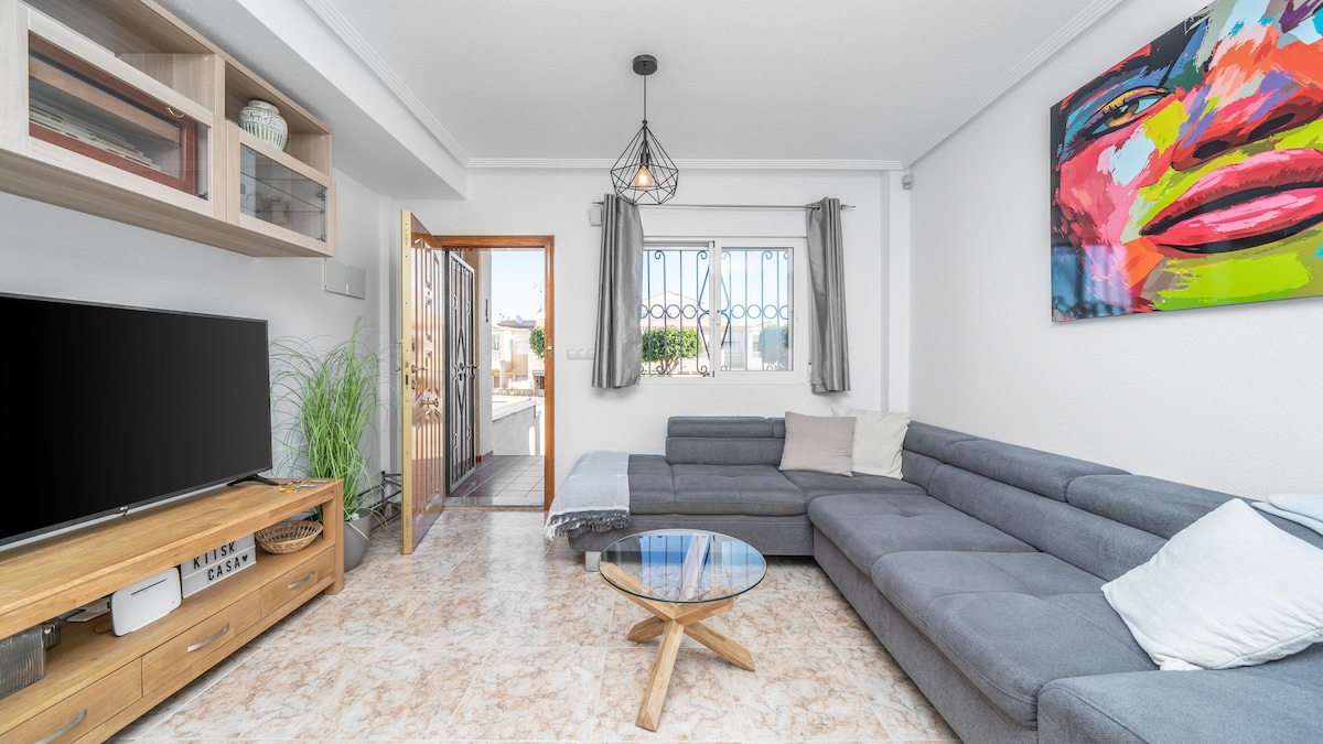 Quadro apartment in Punta Prima (Los Altos) features three bedrooms and a bathroom, making it an excellent home for families searching for a relaxed and carefree stay. The interior boasts stylish finishes and a refined design, partly renovated in 2025. A standout feature is the solarium, which provides a serene space to unwind and soak up the sun. Located in a highly sought-after, family-friendly neighborhood. Its 200 meter walking distance to Los Altos Centro Comercial and several restaurants.