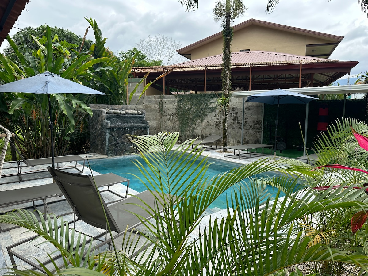 Bucură-te de o cazare complet echipată în mijlocul naturii, cu o vedere frumoasă la vulcanul Arenal, piscină, parcare și grădini spațioase, un loc perfect pentru relaxare în timpul vizitei la La Fortuna. Situat la doar 3 minute de centrul orașului și aproape de izvoare termale, parcuri turistice și restaurante. Suntem aici pentru a te ajuta să-ți planifici activitățile turistice, rezervările turistice și transportul, astfel încât să ai o experiență de neuitat în timpul vizitei.