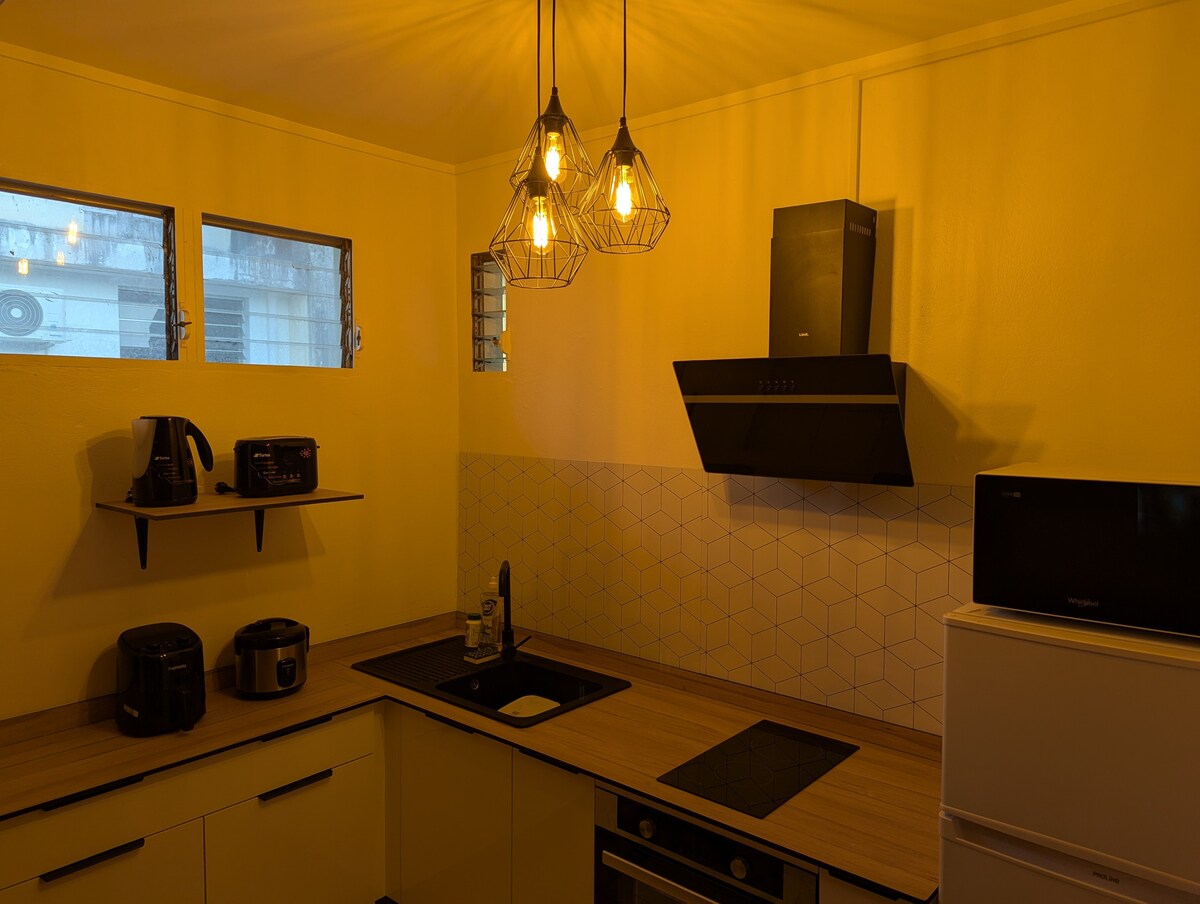 Bine ai venit la La Bulle d 'Andromède – refugiul tău liniștit din Fort-de-France Situat în cartierul rezidențial elegant Didier, departe de cartierele populare și cunoscut pentru liniștea sa, la câteva minute de centrul orașului Fort-de-France. La Bulle d'Andromède te întâmpină într-un studio luminos și atent mobilat de 36 m². Este locul perfect pentru oaspeții care caută confort, liniște și o bază centrală de unde să exploreze Martinica.