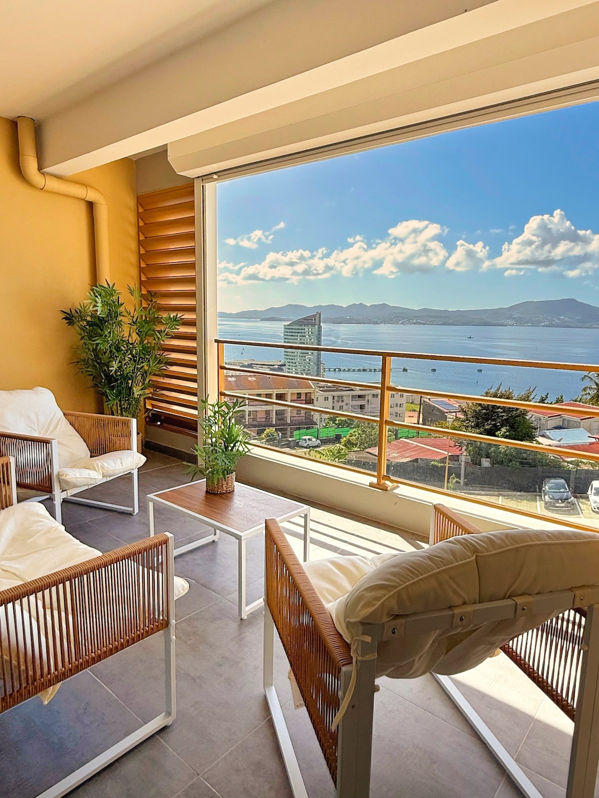 Superb top-floor apartment with plunge pool. The 3 Master Bedrooms with en-suite bathrooms, an office, the private elevator access and spacious living areas featuring a huge living room, kitchen with central island, dining table for 12, indoor garden, covered loggia with large lounge and sunbathing area, as well as a sea-view bar, make this apartment exceptional. Located in Schoelcher, close to restaurants, you can easily swim with the turtles or simply admire the sunsets.