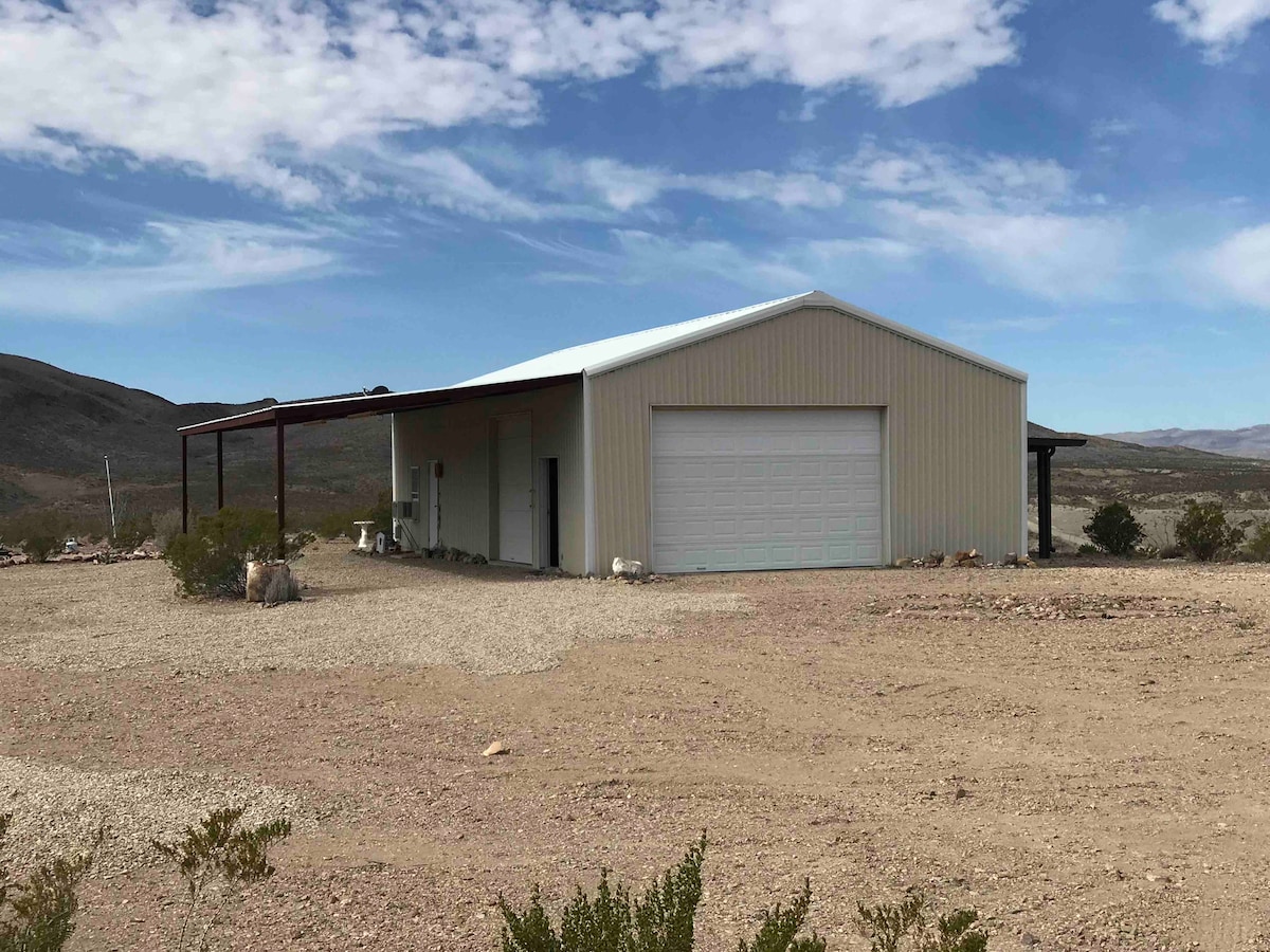 A private Barndominium on 40 acres with all the creature comforts to make this experience a great place for a peaceful vacation. Water, electricity, wifi, close accessibility and all the amenities of home. We sleep up to 6. We have indoor/outdoor wind protection. We have an automatic generator for power outages. Sit in our anti gravity chairs for night sky viewing. We provide 2 shaded areas outside, a carport and an outdoor wood fire pit. Our Barndominium sits on 40 acres of desert splendor.