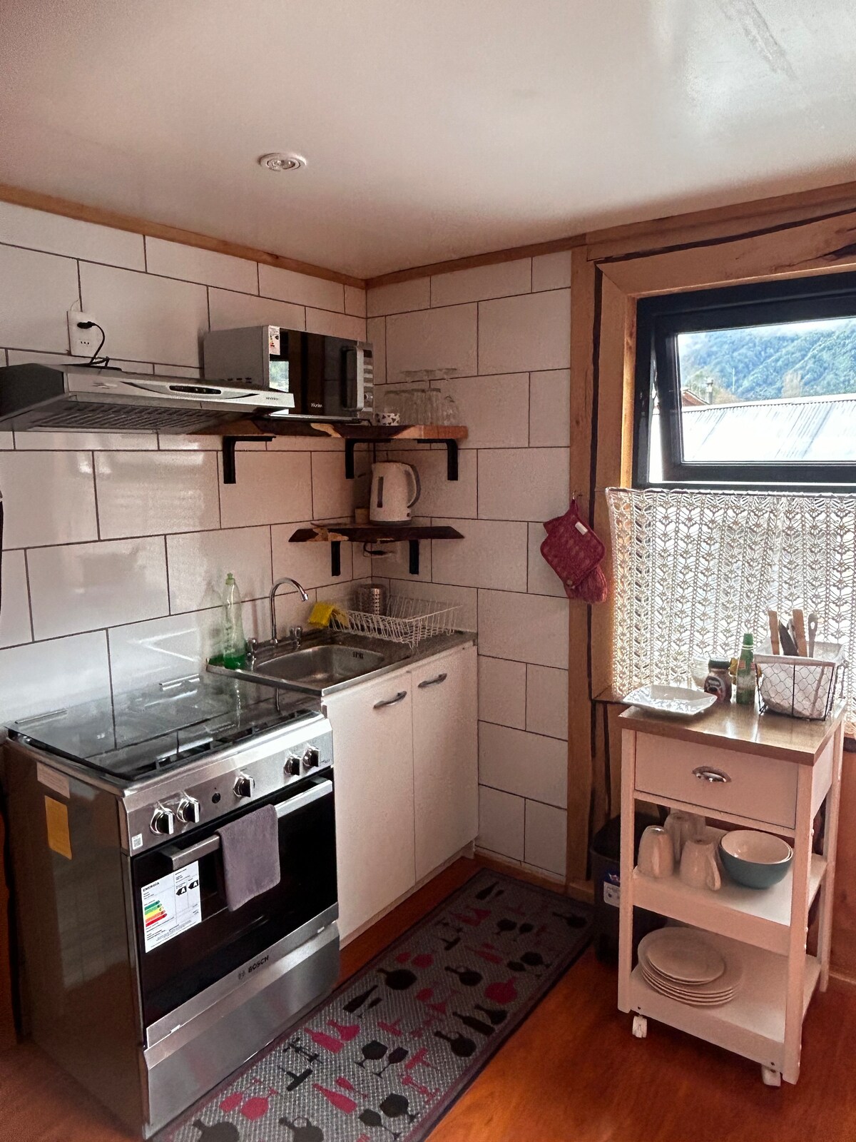 Apartament studio cu bucătărie cu lemne, vedere și pat matrimonial în La Junta și loft cu pat matrimonial. Descoperă apartamentul nostru confortabil, situat perfect în zona urbană La Junta, inima Carretera Austral. Ideal pentru cupluri, familii sau călători singuri, acest spațiu luminos oferă confort modern cu o notă rustică patagoniană. Bucură-te de liniște și ai tot ce îți trebuie la doar un pas distanță. Baza ta perfectă te așteaptă!