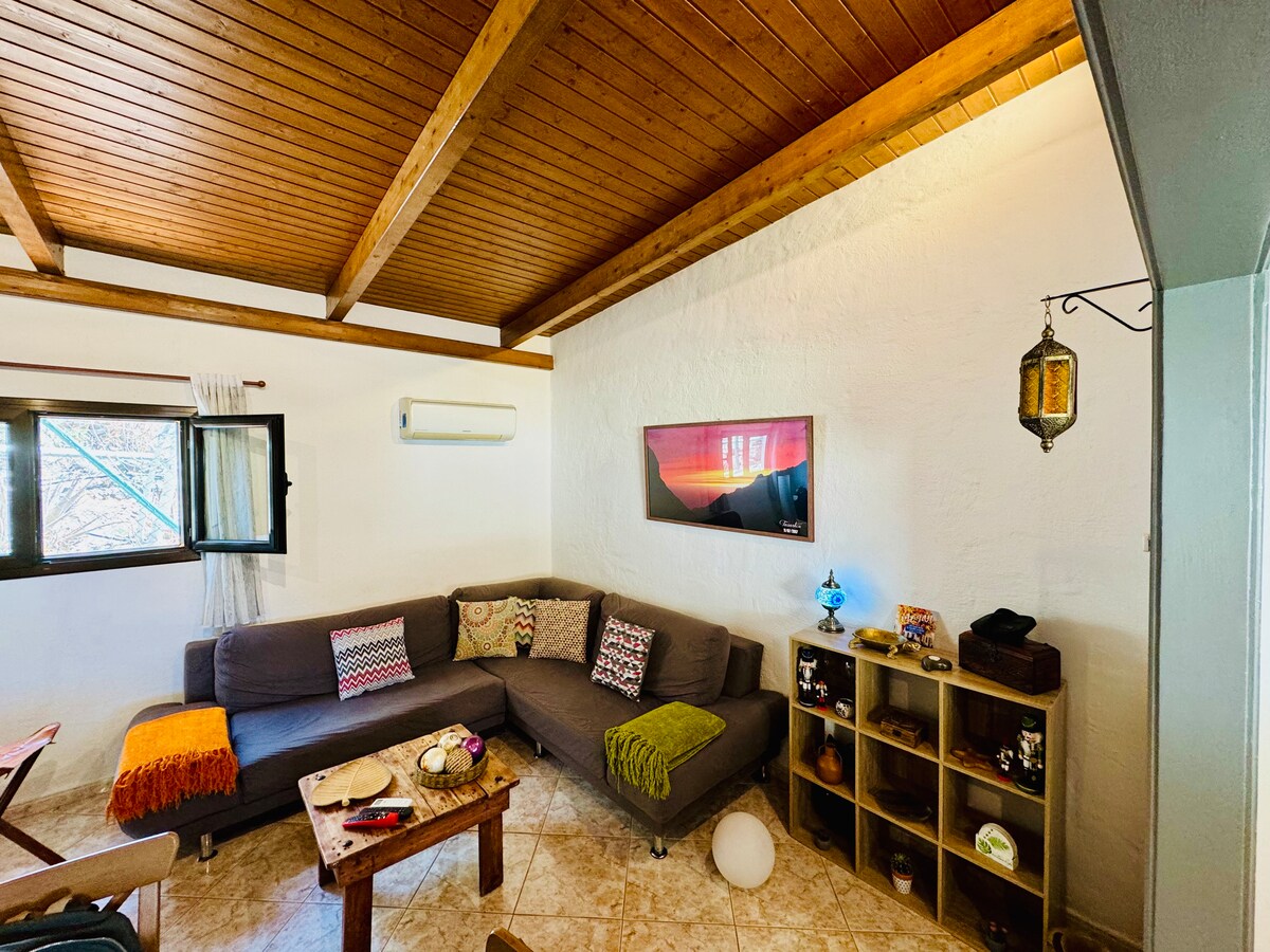 Finca pe 600 m este situată singură în munți, la 8 km de plajă și la 2 km de sat. Accesul este un drum de pământ de 350 m, care ar putea fi un pic dificil pentru unii șoferi, dar poți lăsa mașina la intrare și transportăm bagajele. Bucură-te de natură și liniște! Cultivăm pomi fructiferi și ierburi pentru consumul propriu, toate organice și ne producem energia cu soare și vânt.