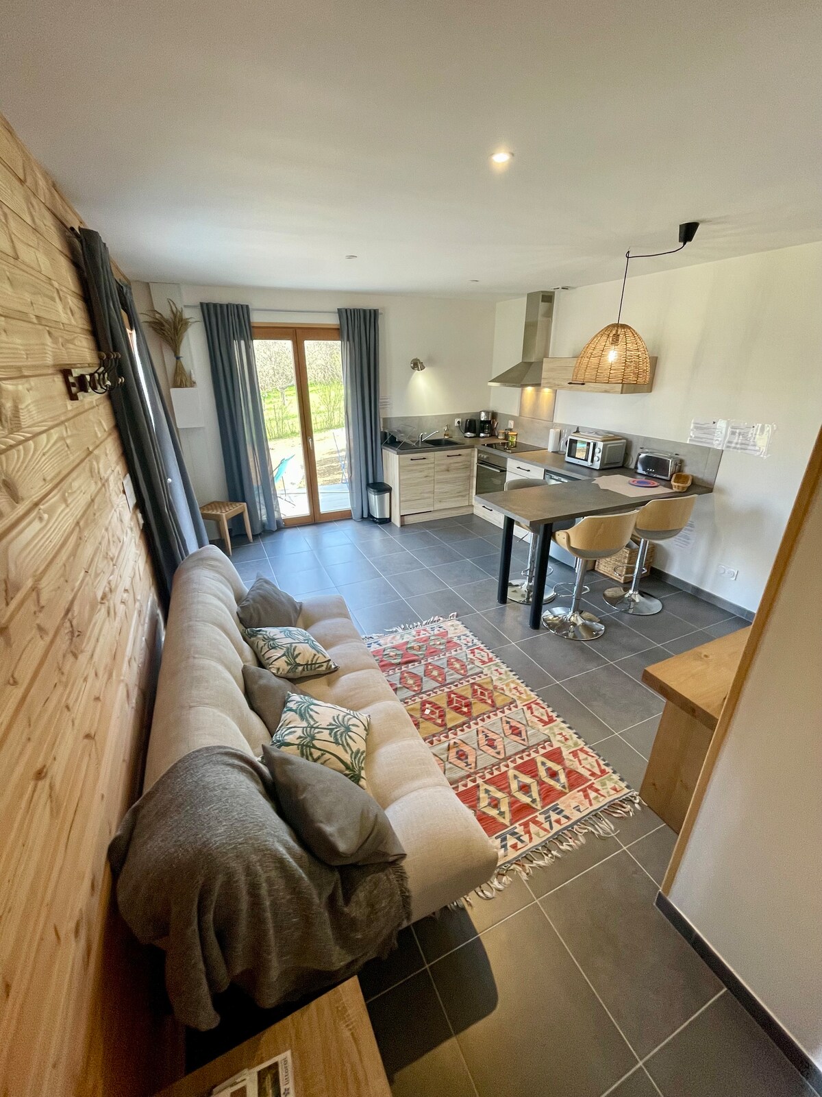 Garsonieră de 23 m² complet renovată (martie 2023), orientată spre sud, cu vedere neobstrucționată. Situată la 700 m de centrul satului La Palud-sur-Verdon. Terasă, parcare și grădină mare. Aer condiționat și încălzire (pompă de căldură) Duș confortabil la intrare. Organizăm activități de canioning, alpinism și parcursuri de aventură. Locuința are un pat de 140 cm (Mérinos). Nu există Wi-Fi (rețelele 4G funcționează bine).