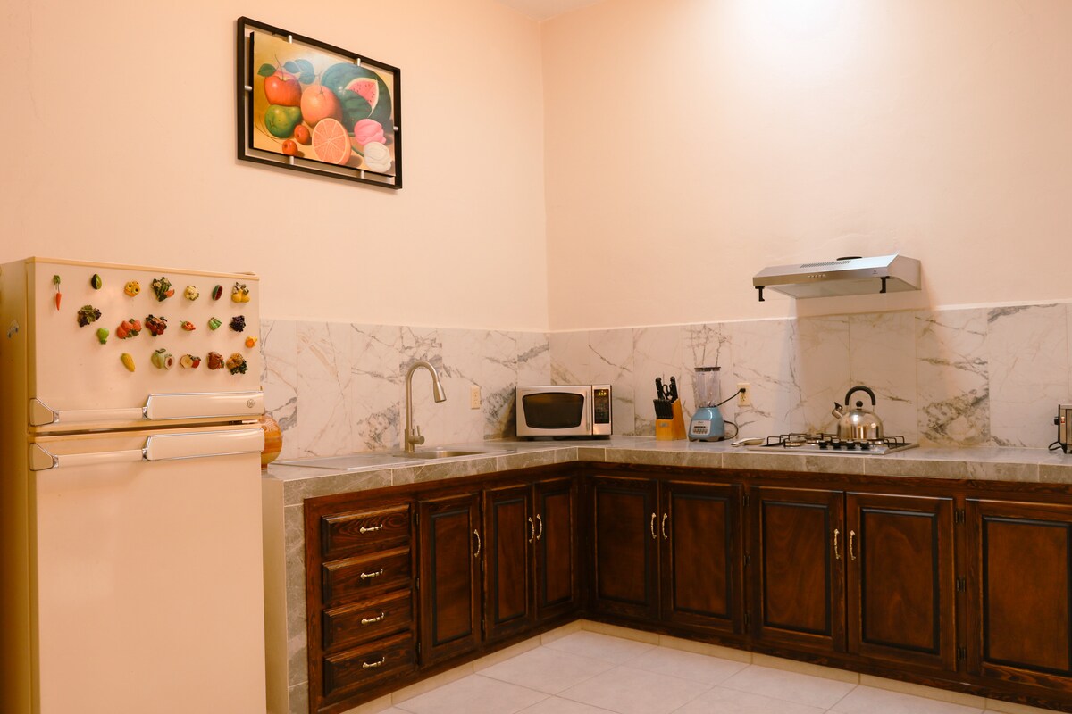 Enjoy a comfortable private apartment located just 3 minutes from downtown Calvillo. It features 2 bedrooms with Queen-size beds, a 49-inch TV, high-speed Wi-Fi, hot water, and all the amenities for a pleasant stay. You’ll be close to traditional restaurants and local eateries, perfect for enjoying the local cuisine and the peaceful atmosphere of the town. In addition, we offer laundry service with special discounts for guests.