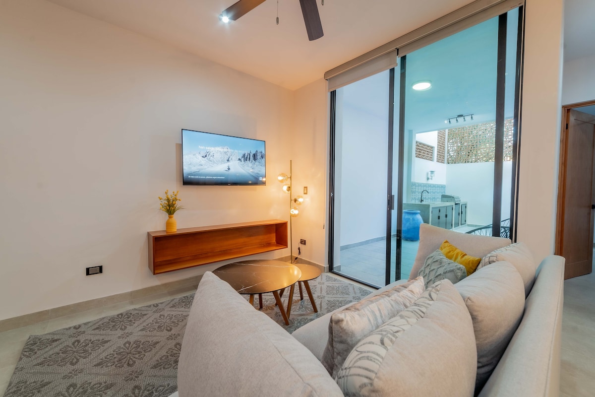 Apartament complet cu terasă în aer liber, designul său îl face unic în oraș; deoarece este inspirat într-un mediu rural californian, dar cu toate facilitățile necesare pentru a petrece o vacanță incredibilă. Este confortabil și confortabil, care are un pat matrimonial, baie completă, parcare proprie, bucătărie echipată unde veți găsi o cafenea regională bogată de care vă puteți bucura pe terasa sa drăguță și confortabilă în aer liber. Suntem bucuroși să îți urăm bun venit!