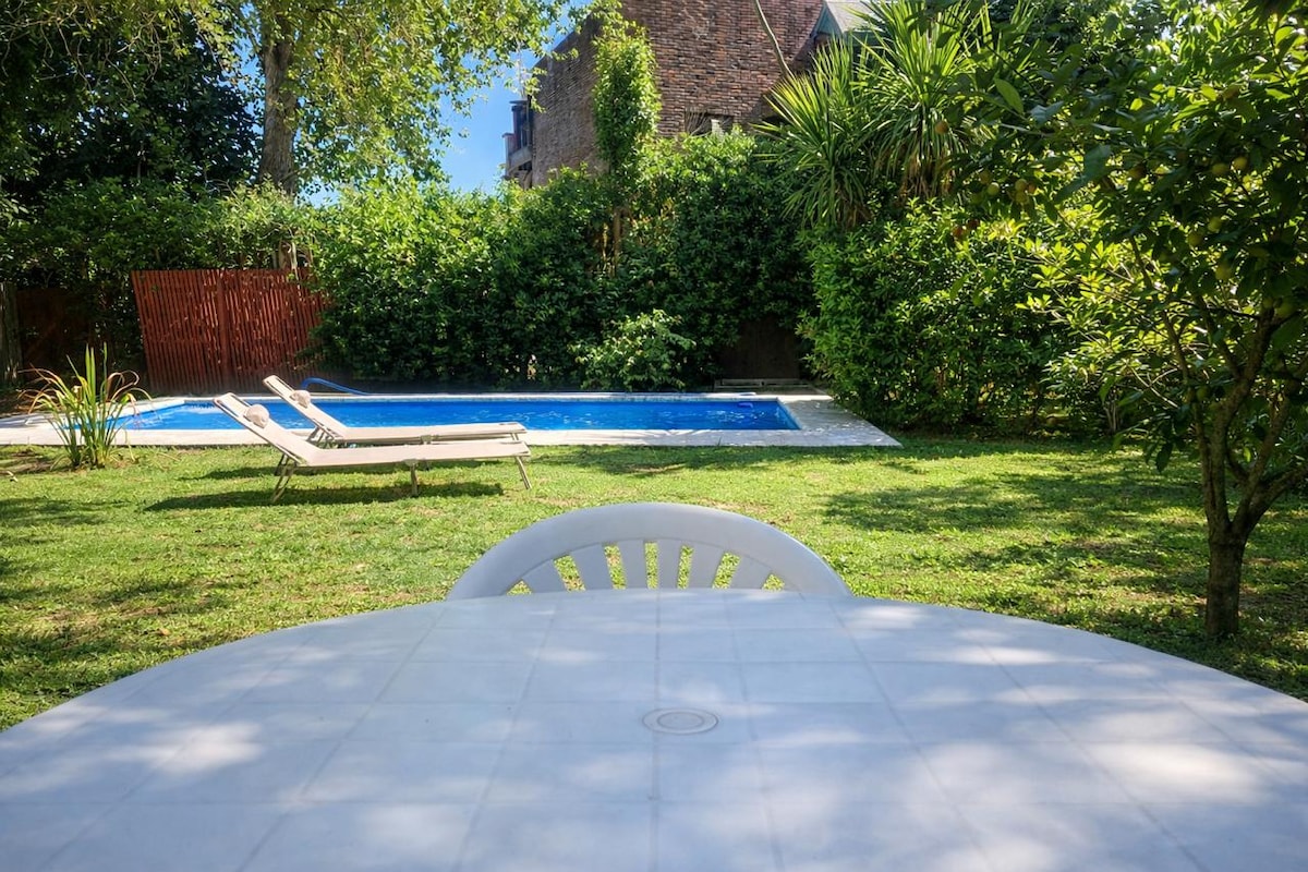 Relaxează-te în această cazare unică și liniștită. Am ajuns să cunosc cabana noastră exclusivistă situată în zona centrală a fermecătorului City Bell, la 5 minute de mers pe jos de frumosul centru comercial și polo gastronomic care caracterizează acest oraș. 15 minute de orașul La Plata și 35 de minute de CABA pe autostrada BsAs-La Plata. Ideal pentru a veni ca un cuplu și a te bucura de verdeață, piscină (oaspeți exclusivi), un asado bogat și o plimbare cu bicicleta. O experiență de neuitat. De asemenea, îți poți aduce animalul de companie.