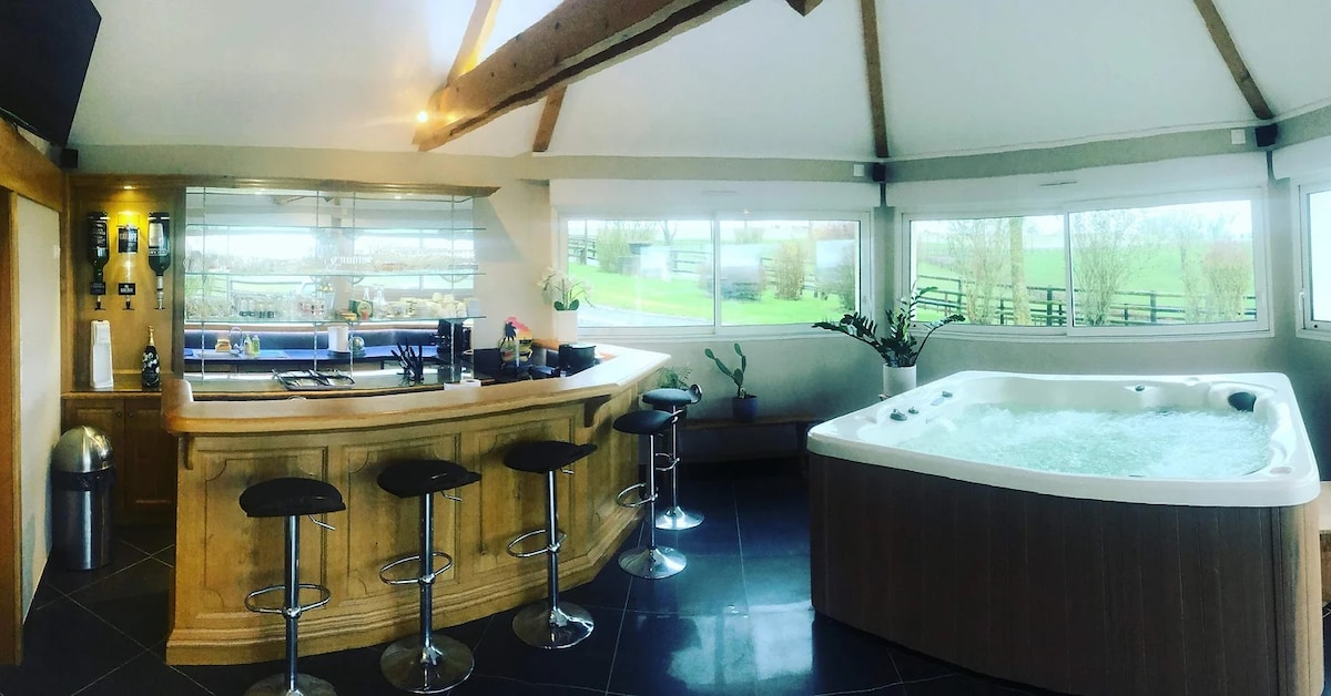 Weekend tropical și romantic cu piscină și jacuzzi privat în mediul rural din Normandia. Cabană pentru îndrăgostiți și natură, vă oferă posibilitatea să vă separați de viața de zi cu zi datorită originalității sale. Terasă mare frumoasă cu vedere la livezi. Jacuzzi cu vedere la natură. Dormitorul mezanin cu vedere la piscină. Mai multe activități îți permit să nu te plictisești niciodată, piscină cu jacuzzi, mașini sportive, șezlong, să te plimbi pe câmpuri. Doar pentru doi adulți fără copii.