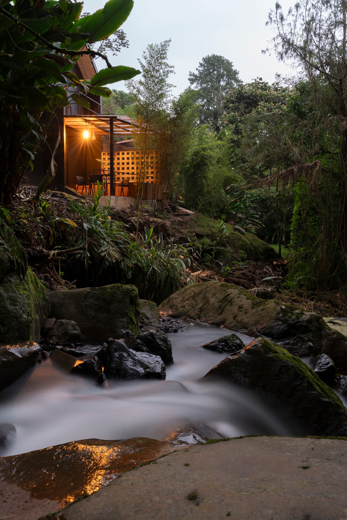 Într-un colț din Anzi, unde numai păsările pot fi auzite, o veche mină de nisip a fost restaurată de pădure. Acolo copiii aleargă cu câinele lor și inventează jocuri neobișnuite în jurul casei din copac. Poți inventa rețete în bucătărie, poți face un grătar în grădină sau poți bea o cafea cu prietenii în jurul focului de tabără. Cabana se află la doar 3 km de centrul istoric al orașului Chía, într-o grădină mare, închisă, care oferă legătura cu lucrurile bune din viață.