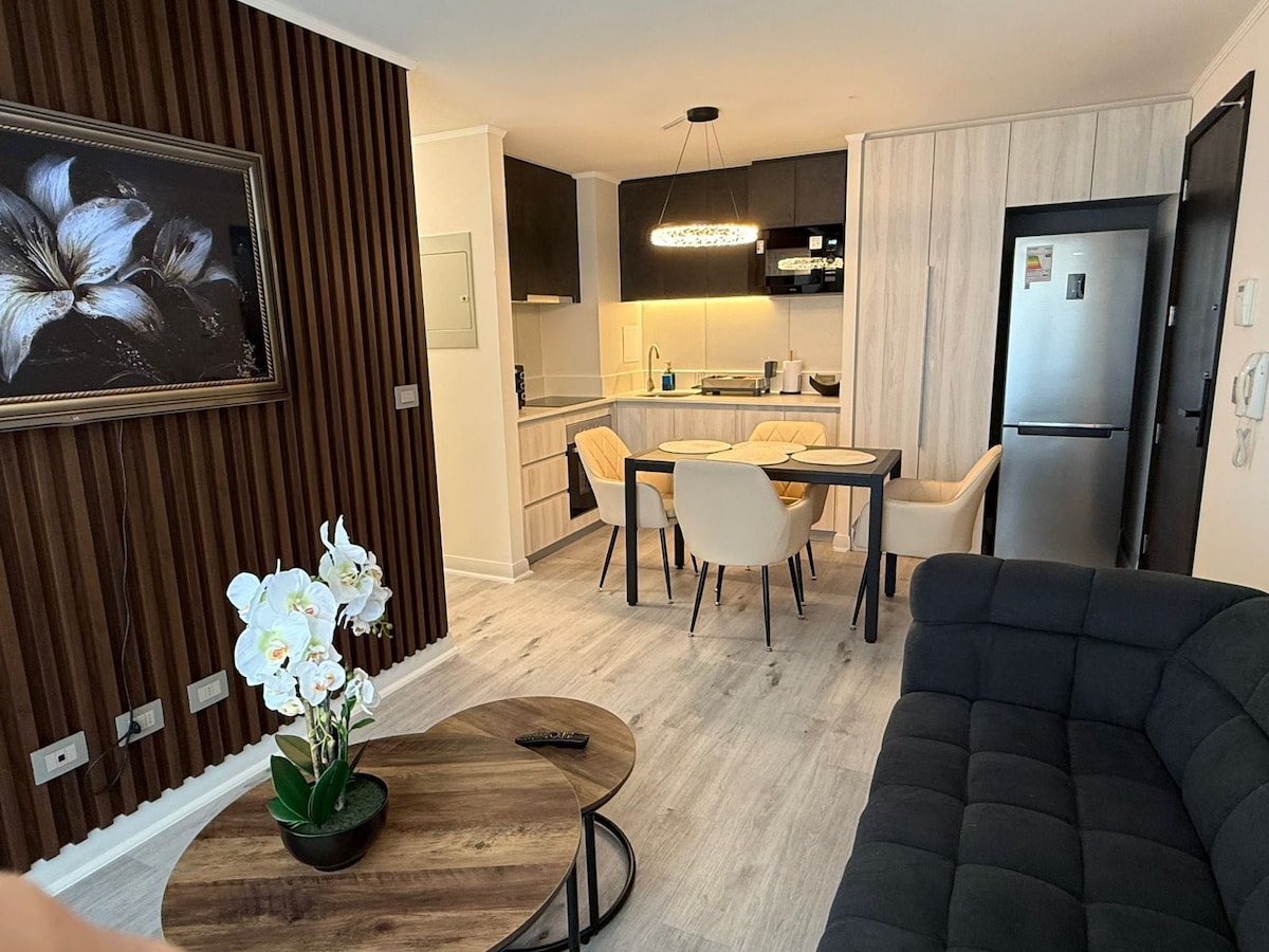 Comodidad y estilo con gran ubicación. Departamento nuevo, decorado con excelente gusto y detalles que invitan a sentirse bien. Cuenta con terraza y vista a la cordillera, estacionamiento, dos habitaciones, escritorio, A/C, WiFi rápido, Smart TV y cocina full equipada, gym.Ubicado en Ñuñoa, zona tranquila y segura, a pasos del metro y Mall Plaza Egaña, rodeado de gastronomía, tiendas, clínicas y servicios. Ideal para viajeros exigentes que buscan descansar, trabajar cómodos o explorar Santiago!