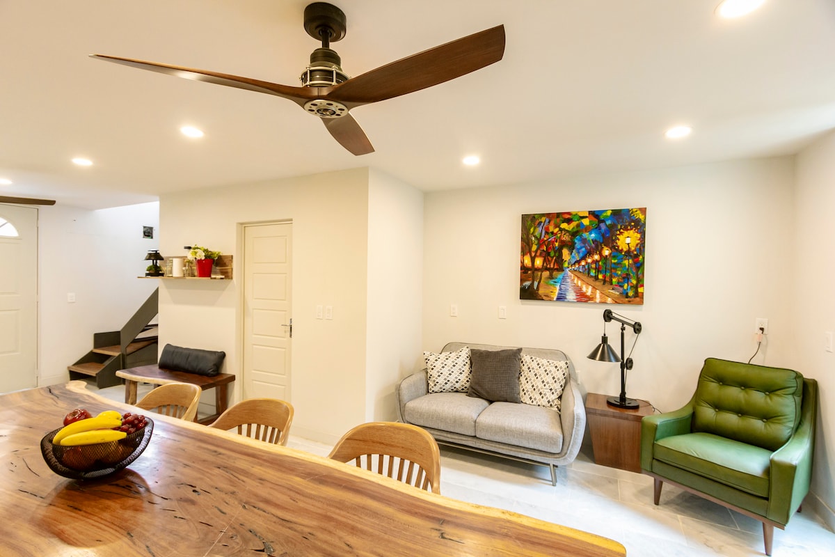 Bucură-te de o ședere confortabilă și modernă în acest Airbnb confortabil, situat într-una dintre cele mai liniștite zone din Santa Anita. Ideal pentru călătorii de odihnă, muncă la distanță sau pentru un weekend. Această unitate de cazare oferă spații de iluminat natural și toate dotările de care ai nevoie Este la etajul superior, așa că trebuie să urci scările pentru a ajunge acolo Este un Airbnb ecologic, avem panouri solare pentru lumină și apă caldă
