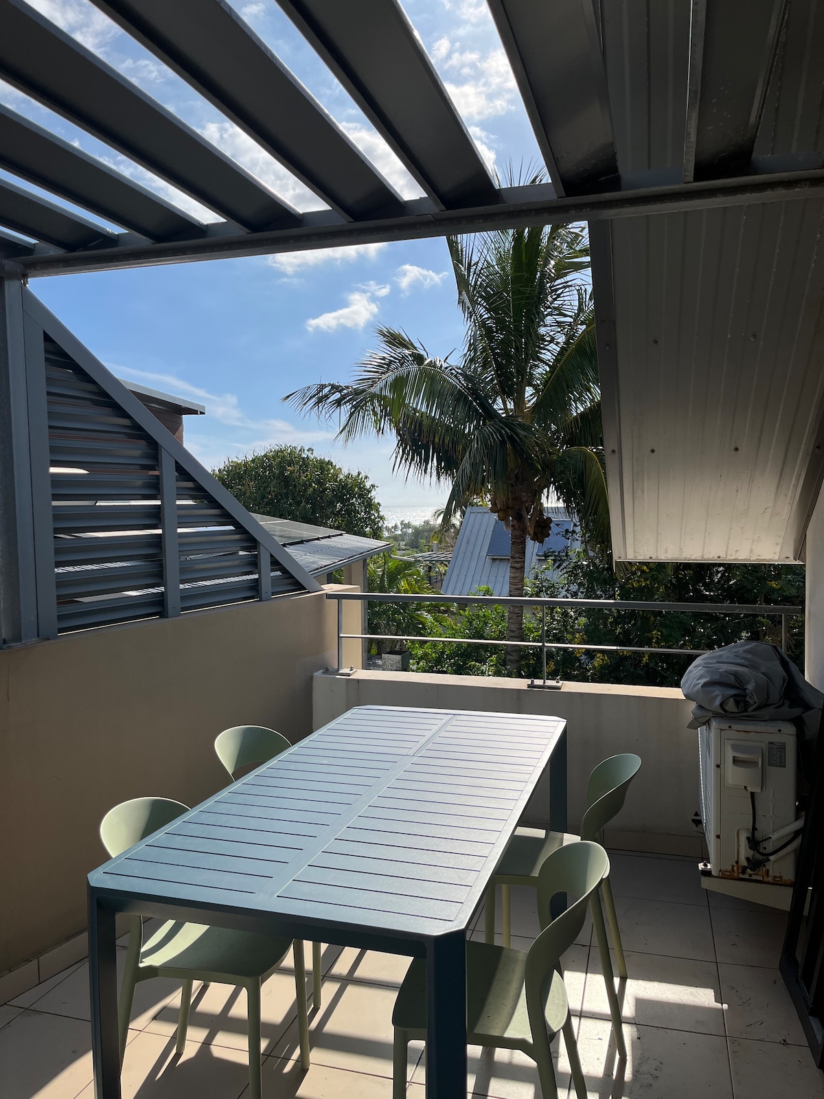 Petreceți vacanțele într-un cadru excepțional, cu apusuri de soare frumoase și priveliști panoramice ale oceanului. Bucură-te de La Réunion în acest studio de 27 m2, renovat în 2019, într-o reședință mică, plăcută, liniștită și sigură. Cazare ideală pentru o singură persoană, un cuplu sau părinți tineri. Confortabil, confortabil, cu aer condiționat, într-un mediu liniștit... este ideal pentru o ședere în dragoste și pentru a părăsi ritmul frenetic al muncii.