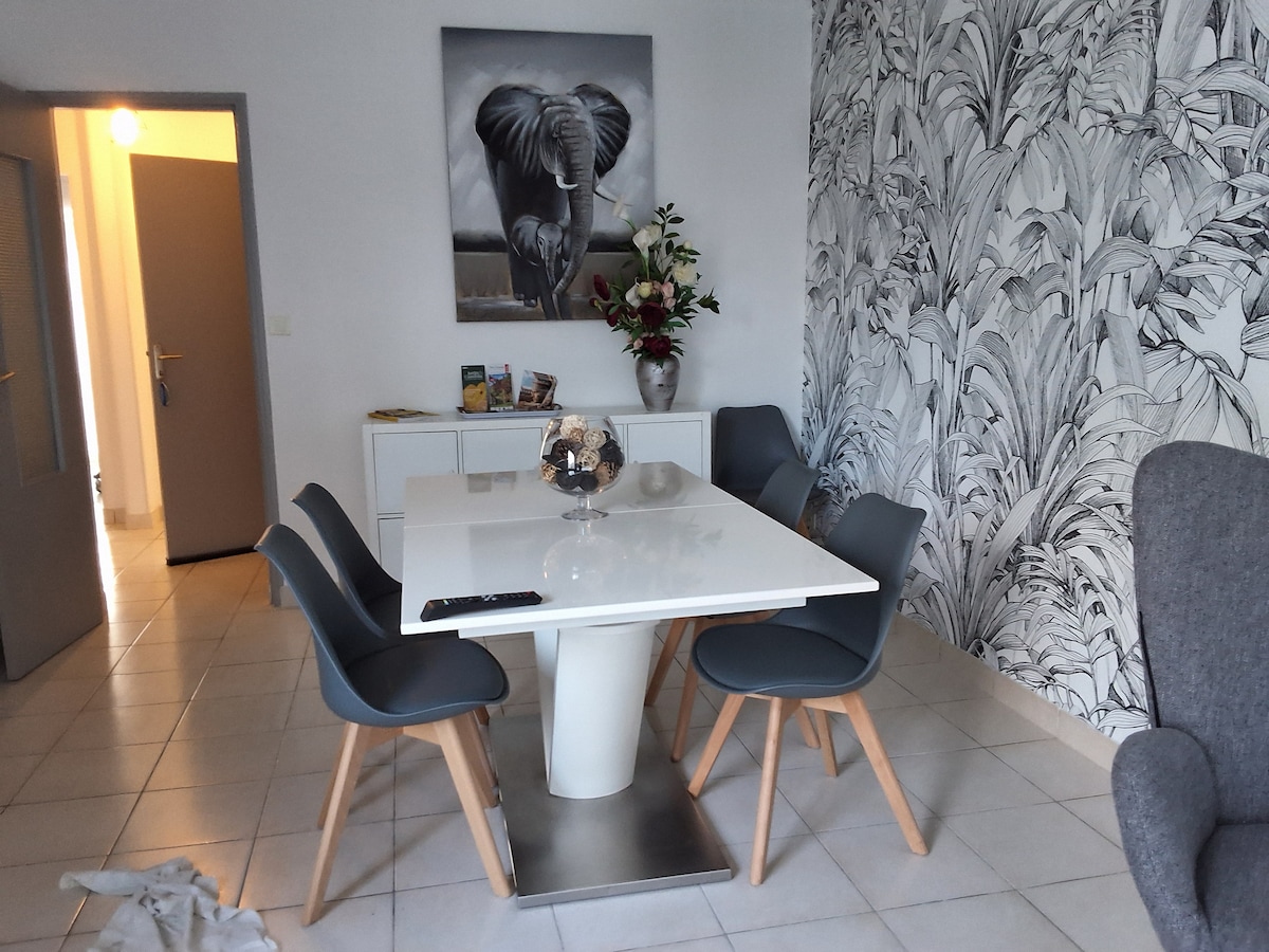 Confortabil, complet echipat, Wi-Fi (Fibră), aproape de magazine și de centrul orașului Cholet. Situat la 10 minute de Parcul Oriental Maulévrier, la 30 de minute de Puy du Fou și de Bioparcul Doué-la-Fontaine, la 45 de minute de Angers și Nantes și la 1: 30 de Futuroscope. Bucurați-vă de o cazare bine echipată, cu grădină privată și împrejmuită. Fă-te confortabil, la fel ca acasă, cu o bucătărie deschisă complet utilată și jocuri pentru toată lumea. Vă sunt furnizate lenjerii de calitate. Veniţi şi puneţi-vă bagajele!