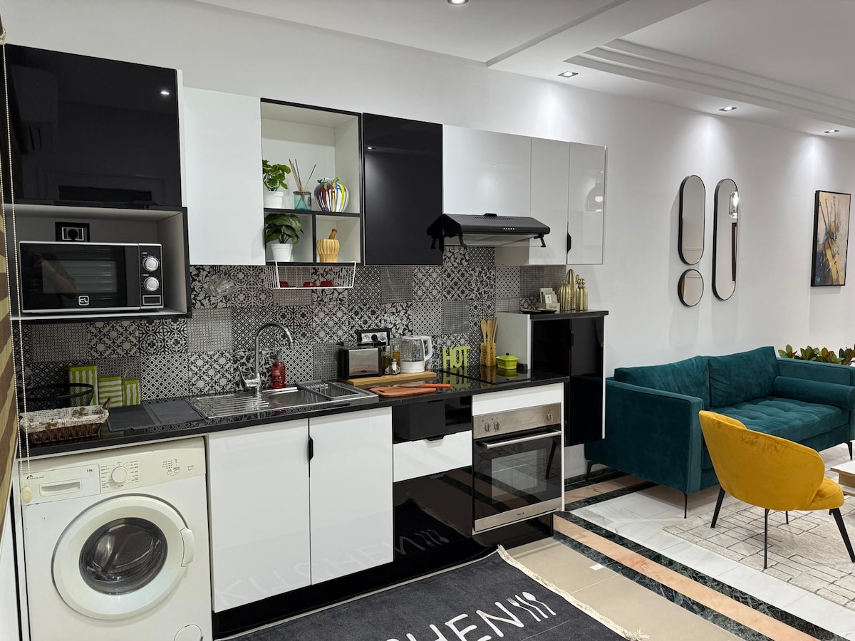 Studio modern și luminos în La Soukra, într-o zonă liniștită, la doar o aruncătură de băț de Monoprix, restaurante și cafenele. Reședință securizată cu lift dublu 🛗 și parcare gratuită🚗. Situat ideal: aproape de aeroportul Tunis-Cartagina ✈️, centrul orașului, plajele Gammarth 🏖️ și Sidi Bou Saïd 🌊. Confort, modernitate și liniște pentru o ședere perfectă.