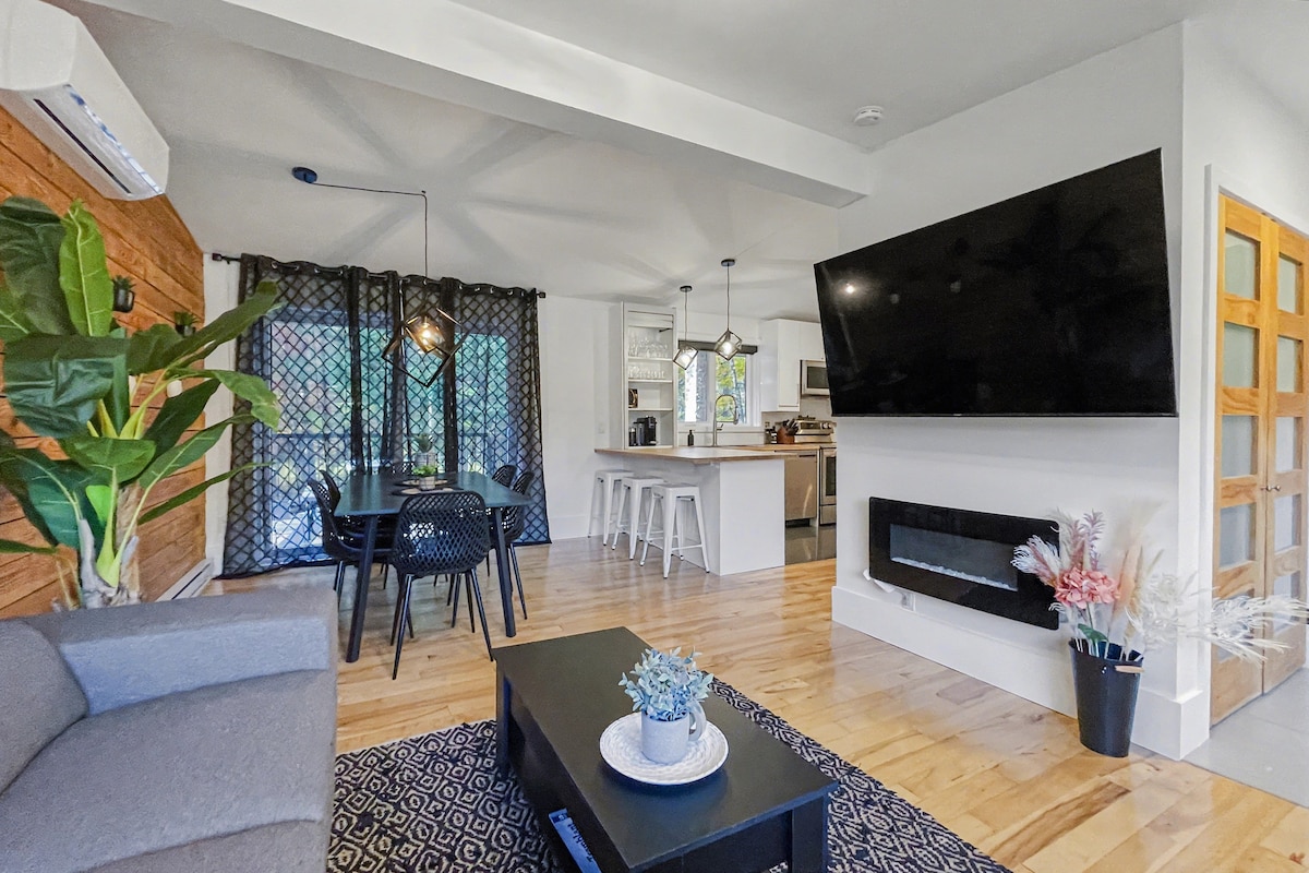 Bine ai venit în cabana noastră modernă la țară, situată pe un teren de 2 acri în Wakefield, Quebec. Vino să te relaxezi și să te reîncarci pentru câteva zile, profitând în același timp de natură și de interiorul confortabil cu șemineu. Există o mulțime de lucruri de făcut în apropiere: descoperă satul Wakefield, restaurantele, buticurile, fermele, parcul Gatineau, centrul spa Nordik, Eco-Odyssee, terenurile de golf din apropiere și dealurile de schi etc. (Autorizația CITQ nr. 298430. Plătim toate impozitele pe vânzări și venituri guvernelor prov/FED).