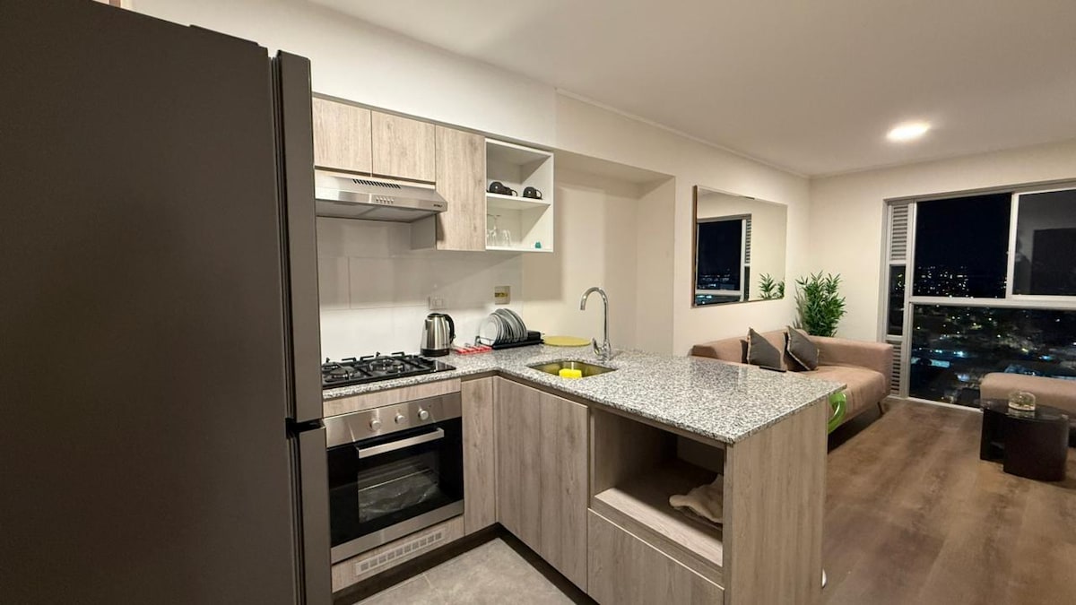 Bienvenid@s todos!! Apartamentul este situat pe Via Expresa, la etajul 21, cu o priveliște minunată asupra orașului Lima. Ne aflăm la jumătatea distanței dintre centrul istoric și Miraflores și la 2 minute de mers pe jos de o stație de metrou. Av. Canada și Javier Prado sunt la 2 și 10 minute de mers pe jos. Este complet utilată, cu un pat matrimonial, internet de 150 Mbps, 2 televizoare (50''), Netflix, Disney+, YouTube Premium, mașină de spălat rufe și tot ce îți este necesar pentru o ședere confortabilă.