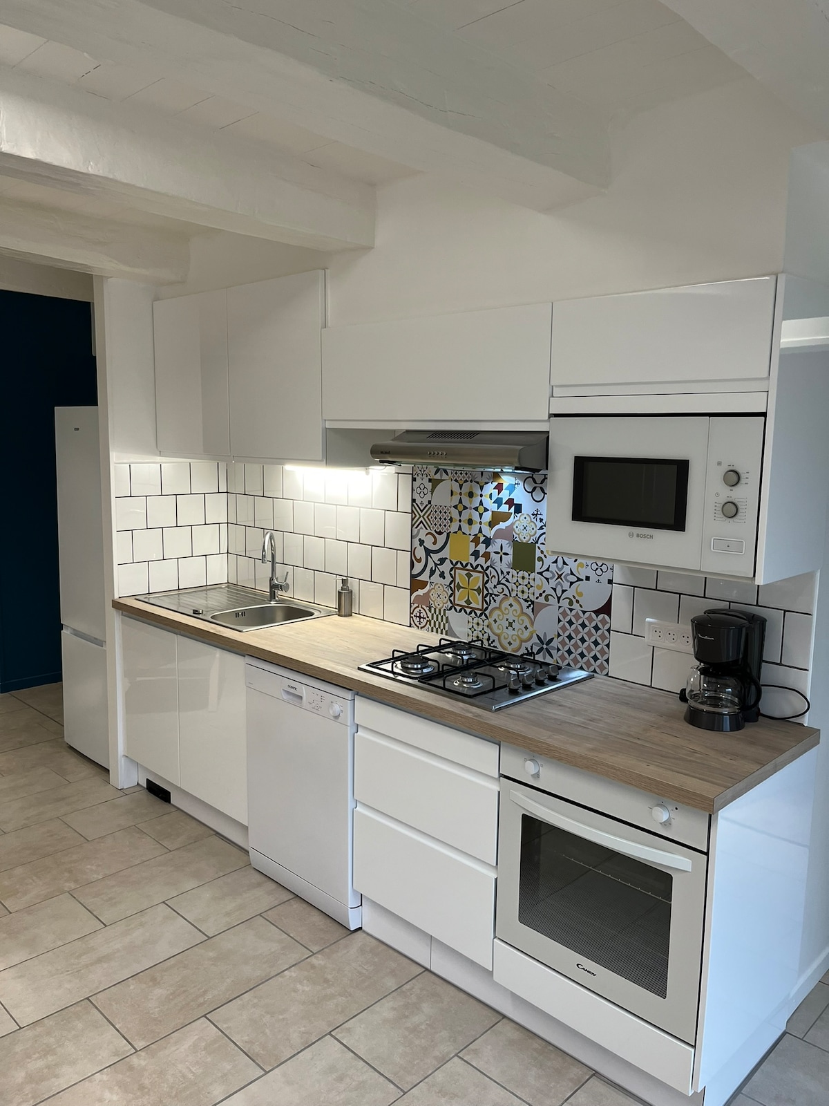 Apartament nou, cu caracter datorită pietrelor expuse și tavanului catedralei. Acesta este compus dintr-un living deschis cu o canapea extensibilă care oferă două paturi, o toaletă separată și o sală de duș la parter (lenjeria de pat furnizată), iar la etaj, un dormitor cu pat dublu. Totul este disponibil pentru gătit într-o bucătărie complet utilată. Apartamentul este dotat cu Wi-Fi și TV. Parcarea este gratuită și chiar în fața apartamentului.
