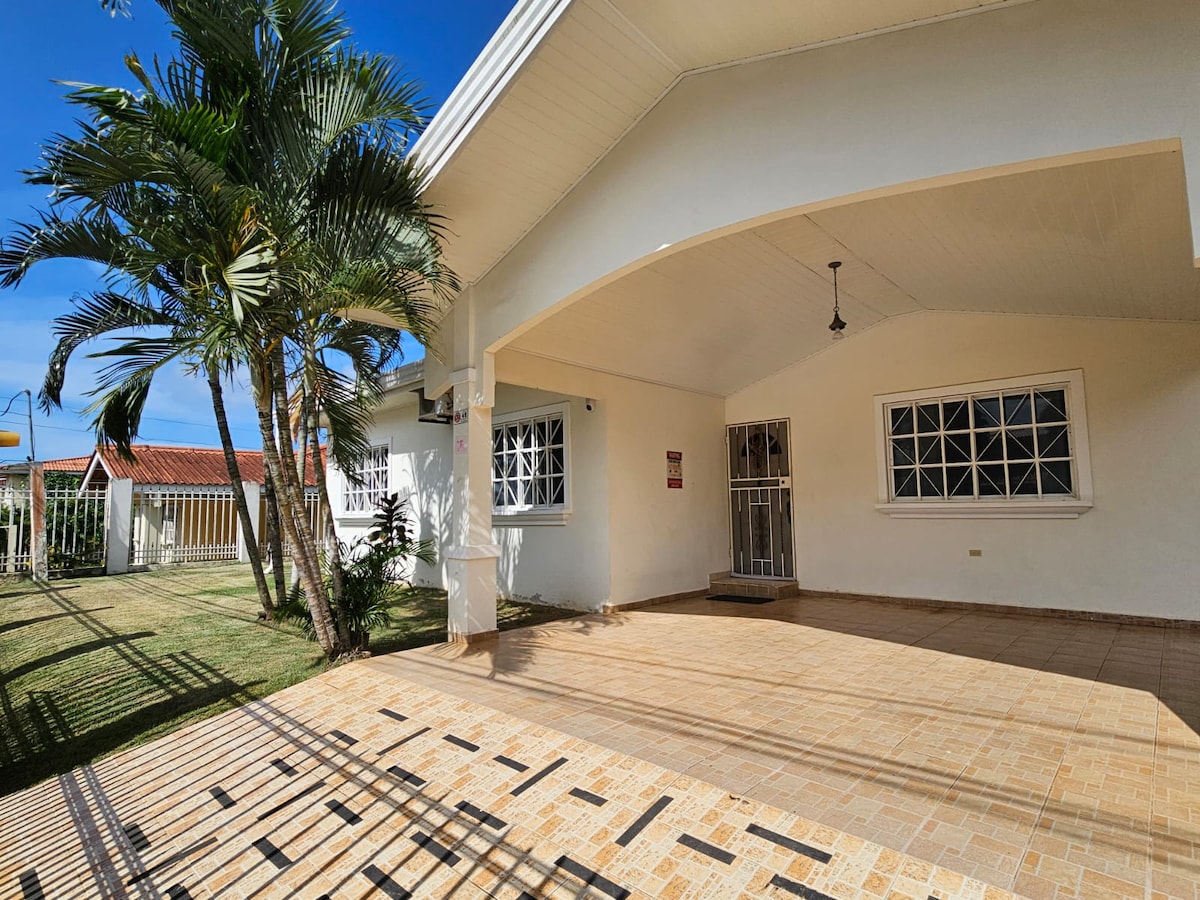 Casă proaspătă, cu copaci și natură. Zone mari de odihnă. Poziție centrală, aproape de mall-uri, restaurante, stație de autobuz și pistă de biciclete. Intrare privată, parcare, bucătărie completă, mobilier complet, baie, TV HD cu cablu, AC în dormitor, apă caldă și Wi-Fi. ENG, PORT, FRAN și ITA Spoken! Acum, Chitré, are o problemă cu apa: nu este potabilă; avem 50% din cantitatea obișnuită, uneori suntem fără apă timp de câteva ore. Te rugăm să verifici înainte de a face o rezervare.