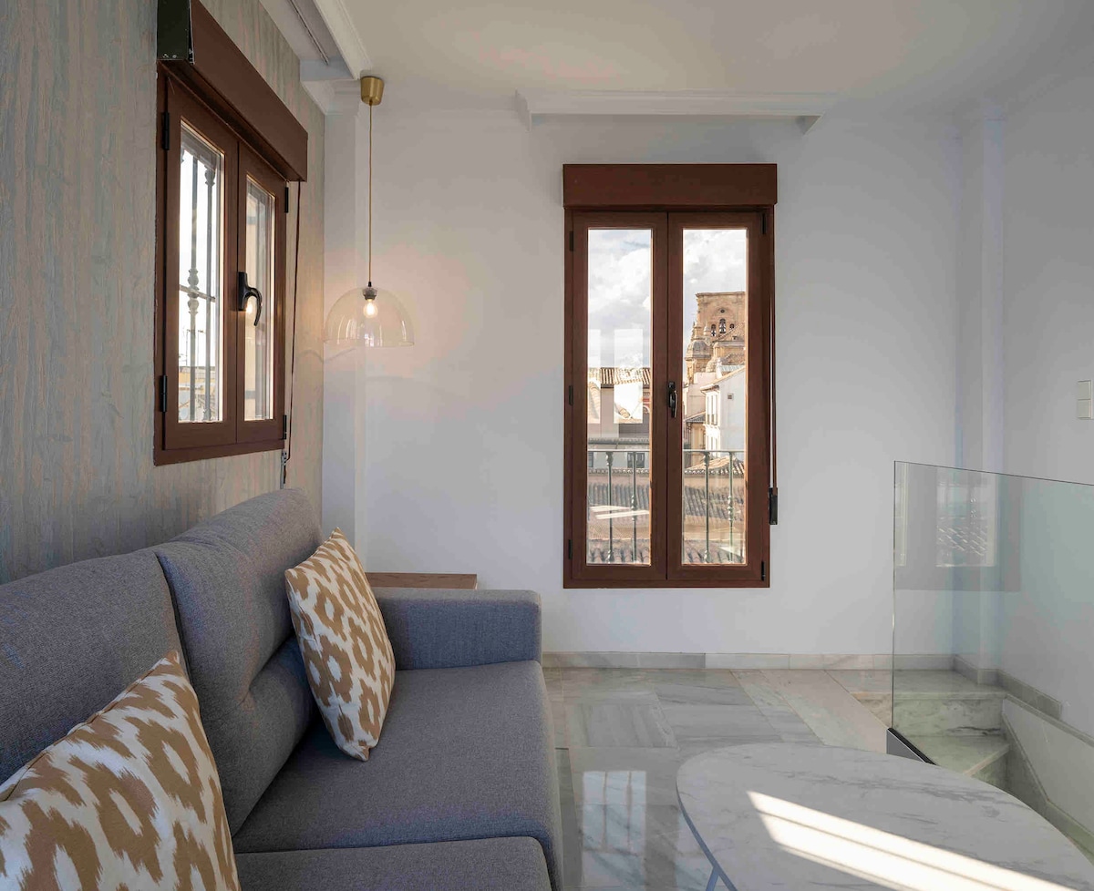 Apartament nou în inima orașului. Plaza Birrambla, vedere frumoasă la catedrală. Recent renovat în stil industrial. Are tot confortul de care ai nevoie pentru a te distra în Granada. Parcare publică la 2 minute de mers pe jos de apartament. Apartament nou chiar în centrul orașului. Cu tot confortul de care aveți nevoie pentru a avea un timp minunat în Granada. Parcare publică la 2 minute de mers pe jos de apartament