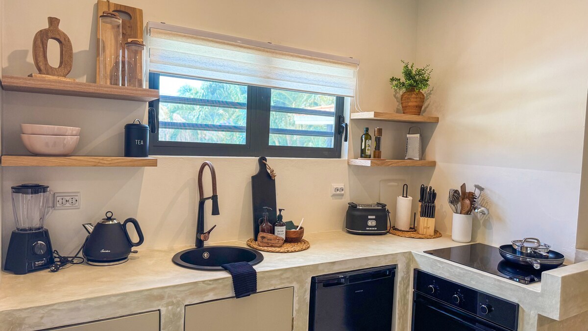 Discover our brand new Balinese stay in downtown Bonaire, just 250m from the boulevard & sea. Car rental available! This peaceful oasis features it's own driveway, a rinse station for dive/surf gear and a refreshing outdoor shower. Unwind on your private veranda with small plunge pool, a Weber BBQ, lounge & hammock. Despite the central location, enjoy tranquility in this stylish space surrouded by tropical birds and iguanas. The elegant interior blends tropical charm with modern comfort.