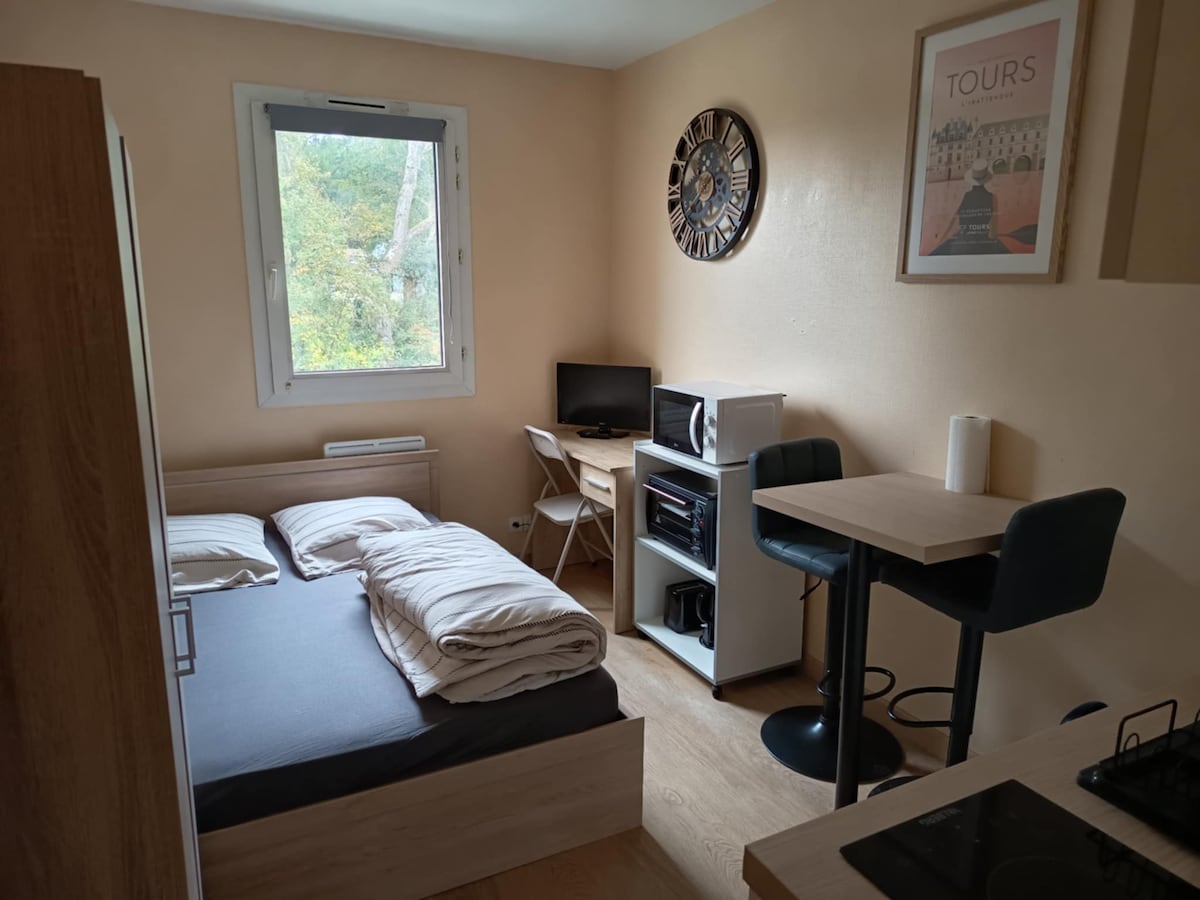Bine ai venit în acest studio recent renovat, situat ideal în Place de la Résistance, chiar în centrul orașului. La picioarele tale: Rue Nationale, magazinele sale, tramvaiul, restaurantele, barurile și magia Old Tours și Place Plumereau Confort și farmec: garsonieră luminoasă, decor elegant, canapea extensibilă se transformă într-un pat dublu confortabil, ideal pentru un cuplu sau un călător solo Bucătărie și zonă de luat masa pentru sesiuni de luat masa sau de lucru la distanță. Smart TV Notă: Situat la etajul 4, fără lift