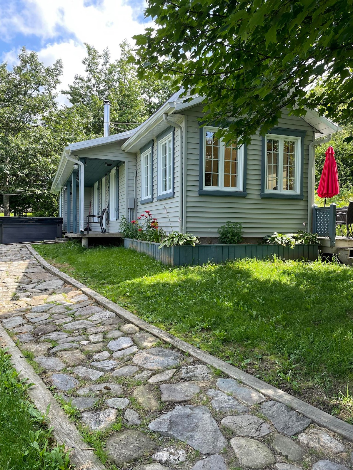 Cale privată și teren imens direct pe malurile magnificului râu St. Lawrence, natură și liniște asigurate . Cabana îți promite momente de neuitat cu familia sau prietenii . Poate găzdui până la 4 persoane în 2 camere închise la etaj. Parterul vă întâmpină cu un living cu aragaz pe lemne și bucătărie complet utilată, precum și o sufragerie și un acoperiș de sticlă (vara) Cabana are 2 băi Grătar și spa la proprietate (vară )