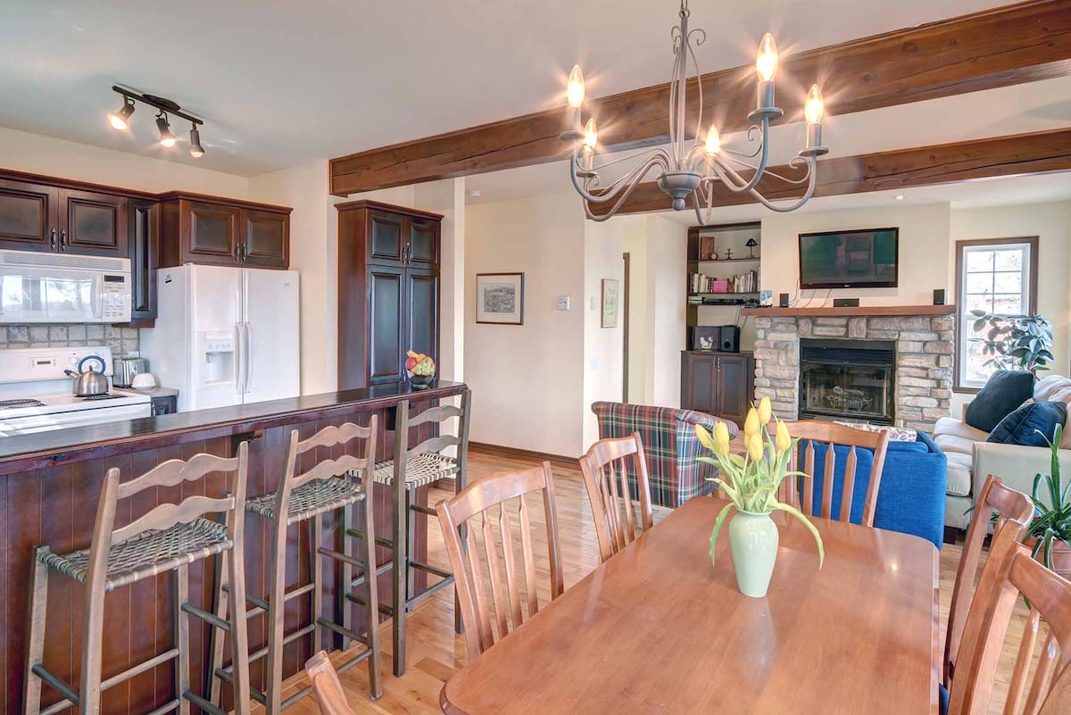 Charming condo in the old village, few steps to all amenities. Fine dinning close by. Great for summer and winter escapes, walking distance to beautifull lake Moore, basket ball, volleyball easy access to bike trails, 12 km paved multifunctional path along the river, golf courses, race track, mountain biking. Situated on the Ironman track makes it perfect for training or cheering the athletes. In winter 5 mins drive to Tremblant for downhill or Nordic ski or snowshoe in the area.