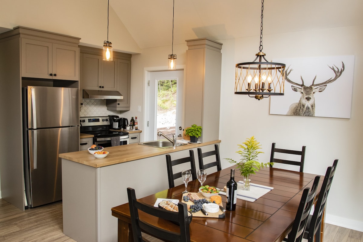 Bine ai venit la La Khabine! Această cabană confortabilă, modernă, este echipată cu tot ce ai nevoie pentru a te relaxa și a te conecta cu natura. Bucură-te de un pahar de vin cu sunetul unui foc pârâitor în șemineul cu lemne. Admiră priveliștea pădurii prin ferestrele de la podea la tavan din jur. Relaxează-te în sauna privată cu butoi de cedru în aer liber. Produsele naturale de îngrijire personală, lemnele de foc, săpunul de rufe și Wi-Fi de mare viteză sunt toate gratuite. Sperăm să vă placă căsuța noastră cu ferestre la fel de mult ca și nouă:)