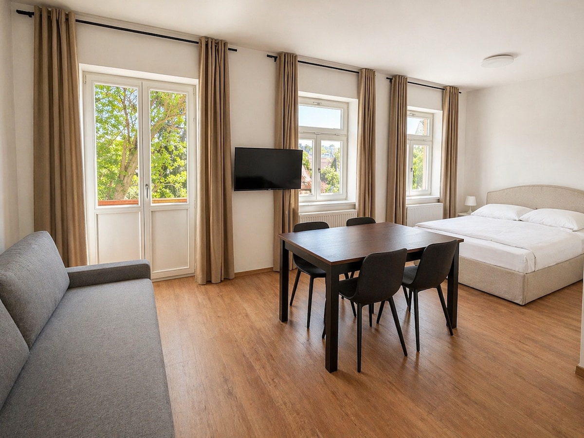 ★ Comfy Spacious Studio ★ Up to 4 Guests ★ Historical Villa in Quiet Neighborhood ★ Great Espresso ★ High Speed WiFi ★ Washer/Dryer ★ Enjoy your morning espresso while observing Prague and gardens staying in bright attic studio in famous Hřebenka villa quarter, very close to the city center. Absolutely quiet hideaway with 365 degrees view, well equipped and comfortable. Full kitchen with stove, oven and dishwasher at your disposal. Villa garden also available for afternoon or evening rest.