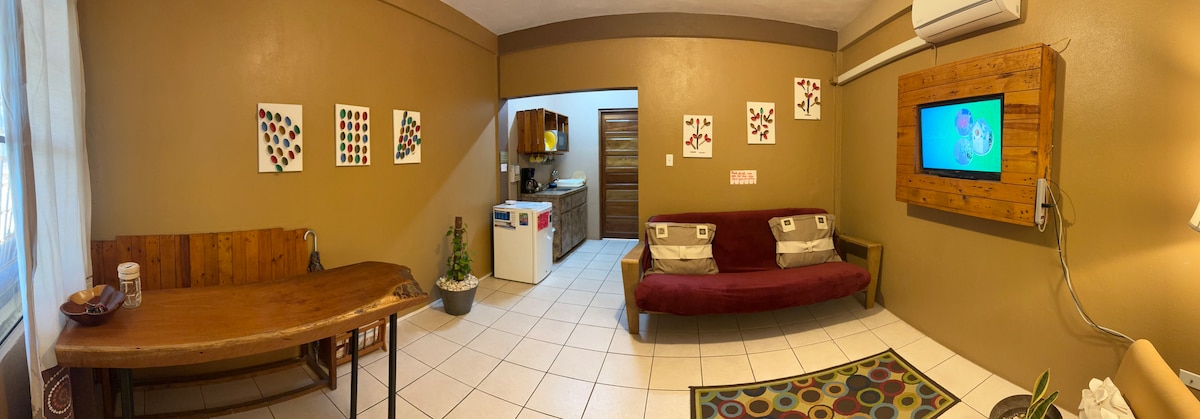 Relax in our cozy, modern studio just 3 minutes from the airport. Perfect for early flights or late arrivals, this fully equipped space offers A/C, Wi-Fi, and all the essentials. Enjoy easy access to Altun Ha, the Belize Zoo, cave tubing, and ziplining. Whether passing through or exploring Belize, this is your ideal base for comfort and convenience.