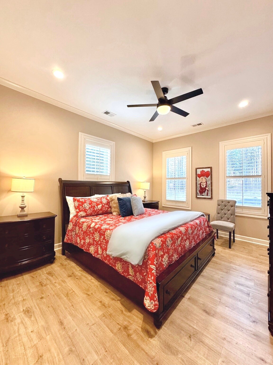 Welcome to The Camellia House, where friends and families gather and Ole Miss game-day memories are made. Located in upscale Savannah Square, just a 10-minute walk to Oxford’s Famous Square and about 1.5 miles to the Stadium, this 3BR/3BA Southern Living–style home has it all. Walk to favorite Midtown & Square eateries, cheer on the Rebels on the 65” TV, relax on the screened porch, and enjoy sunset sweet tea on the swing together. Spacious, comfy beds, walkable, and full of charm. Hotty Toddy!