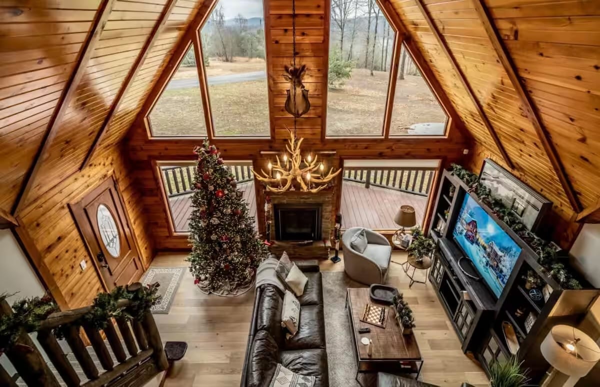 Cabană rustică renovată cu vedere sezonieră la lac. 3 dormitoare, 3,5 băi. Locuri de dormit 10. Nu direct pe lac, dar oaspeții au acces la rampa lacului și a bărcii comunitare. 2x paturi matrimoniale în fiecare apartament de la etaj. Apartamentul principal are pat matrimonial și acces la terasă cu vedere la lac/pădure. Televizoare inteligente/difuzate în fiecare BR și LR. Bucătărie echipată cu tot ce este necesar pentru ședere. Șemineu și masă de biliard/ping-pong în LR. Punte cu lumini de cafenea, grătar Weber, cadă cu hidromasaj, vatră cu gaz cu scaune, mese, balansoare, jocuri și a doua vatră în zona gazonului.