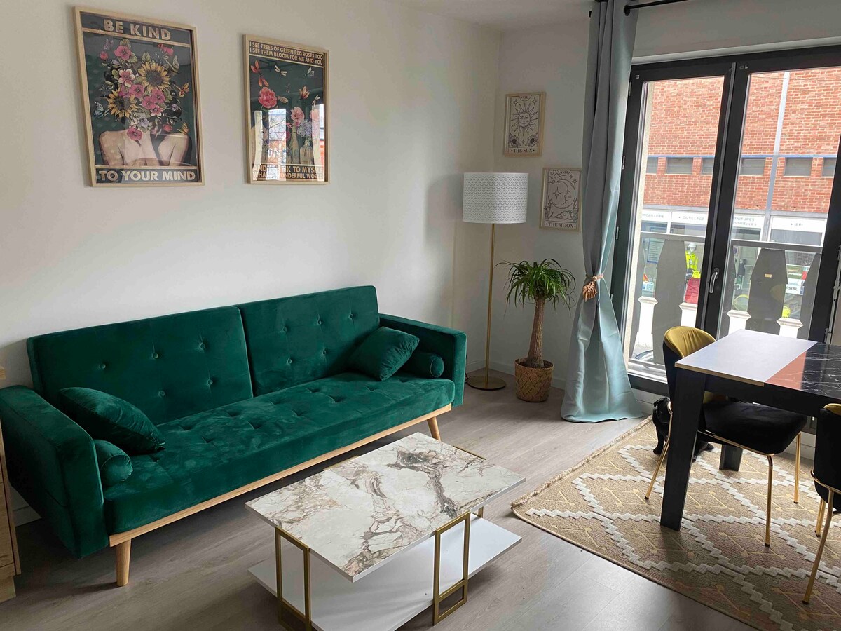 A seulement 15 min de l’aéroport CDG sans le problème des nuisances sonores A 20 min du Parc des expositions A 25 min du PARC ASTÉRIX A 15 min de la mer de sable Venez découvrir le charmant village de Dammartin en goële, L’appartement est situer à une rue du centre ville, il y a de nombreux restaurateur, une église, différents petits commerce… etc L’appartement est idéal pour passer un séjour relaxant, deux tv connectés sont à disposition Un canapé d’angle convertible et une literie adapté