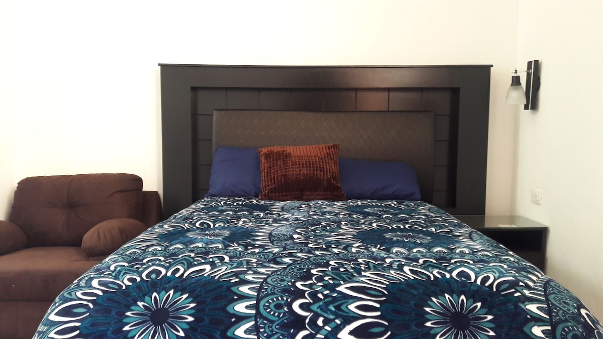 Es un espacio tranquilo, moderno, céntrico, nuevo y acogedor para pasar una excelente estancia corta o larga en la bella ciudad de Zamora El espacio Un Estudio independiente con chapa electrónica para mayor comodidad el cual cuenta con todos los servicios como son AIRE ACONDICIONADO, agua caliente, Netflix, internet de gran velocidad Destacable A tan solo 13 minutos del centro Centro comercial sentura a 10 minutos Bodega Aurrera con Cajero BBVA a 4 minutos Oxxo a 4 minutos