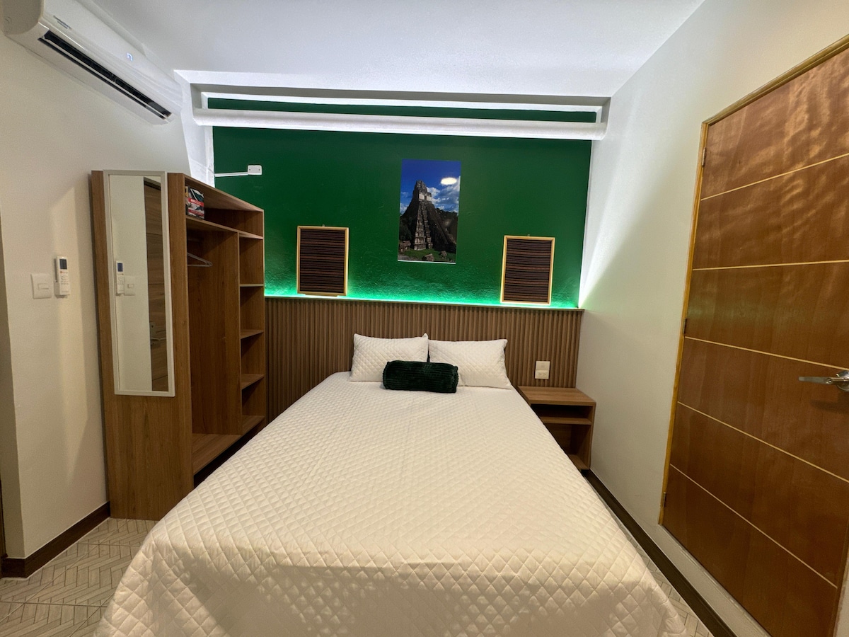 Conveniently located near: • 10 minutes from Mundo Maya International Airport • 8 minutes from Flores Island • 60 minutes from Tikal • 5 minutes from the hospital • 3 minutes from Mercado Central (where the bus station is also located) Perfect for couples, small families, or friends, this cozy space offers air conditioning, Wi-Fi, a fully equipped kitchen, and a comfortable living area to unwind after a day of exploring. Your ideal home for discovering the beauty of northern Guatemala!