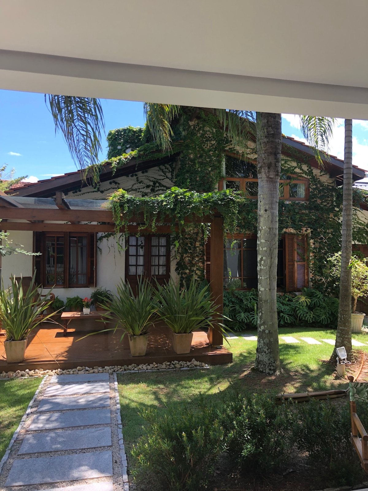 „Un refugiu al păcii și romantismului între verdeață și apele din Lagoa da Conceição” 🌿✨ Descoperă combinația perfectă de liniște și exclusivitate în casa noastră, situată în fermecătorul sat Canto dos Araçás, înconjurat de pădurea luxuriantă a Atlanticului. Dacă tu și persoana iubită sunteți în căutarea unei experiențe unice de a vă conecta cu natura într-un mediu confortabil, acesta este refugiul ideal pentru a vă relaxa de rutină, pentru a vă bucura de momente de liniște și pentru a crea amintiri de neuitat.