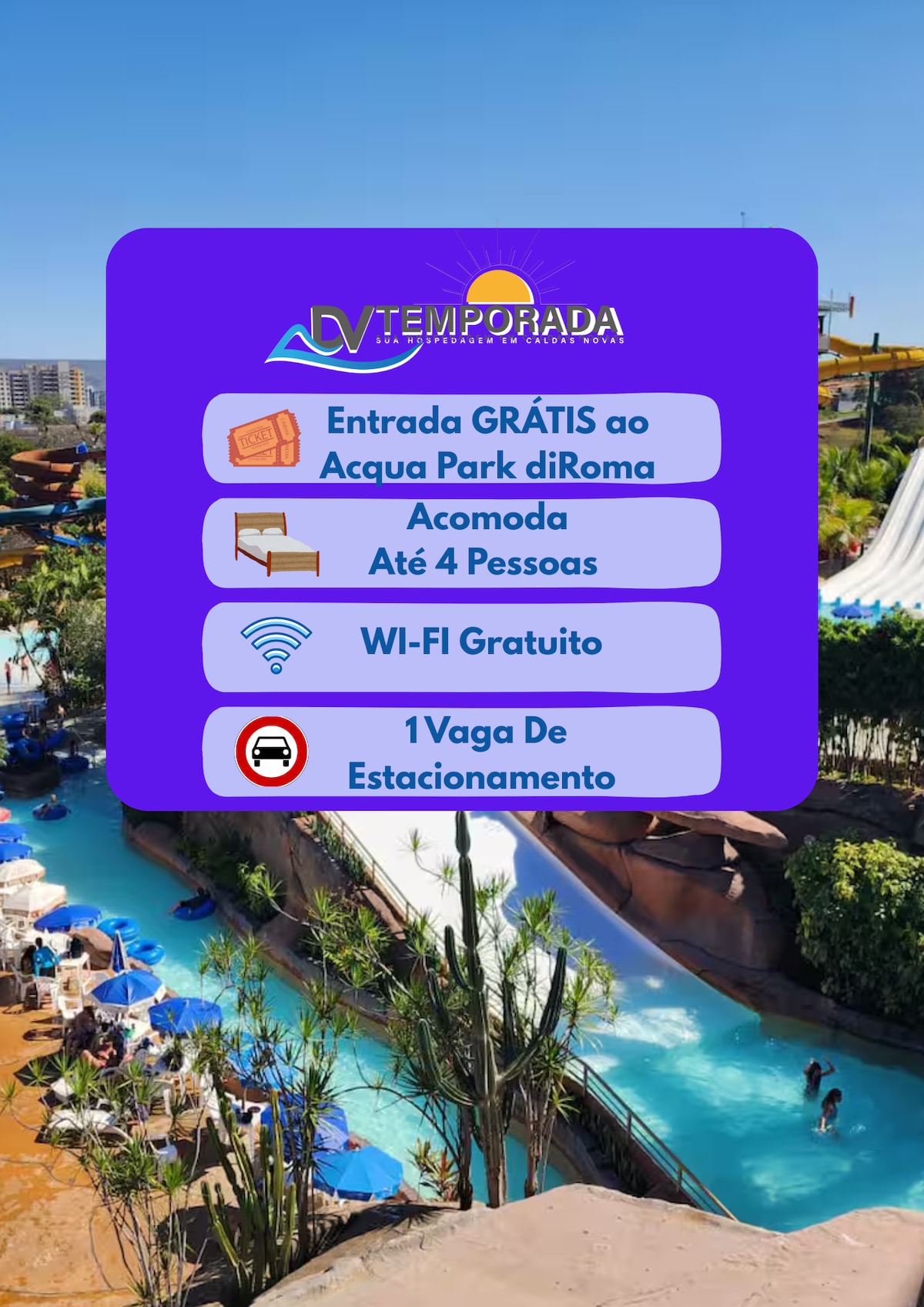 ⚠️ ATENȚIE, CITEȘTE FIECARE ANUNȚ!! ⚠️ Oaspeții au acces GRATUIT la parcul acvatic Acqua Park/Splash diRoma (42.000 m² de zonă de agrement), situat la aproximativ 300 de metri de hotel, practic concierge cu concierge. Hotelul este situat la 2 km de centrul orașului Caldas Novas. O TAXĂ DE 5,00 REALI DE PERSOANĂ, PER REZERVARE, VA FI PERCEPUTĂ LA RECEPȚIA HOTELULUI LA CHECK-IN. Niciun tip de masă nu este inclus în cazare.