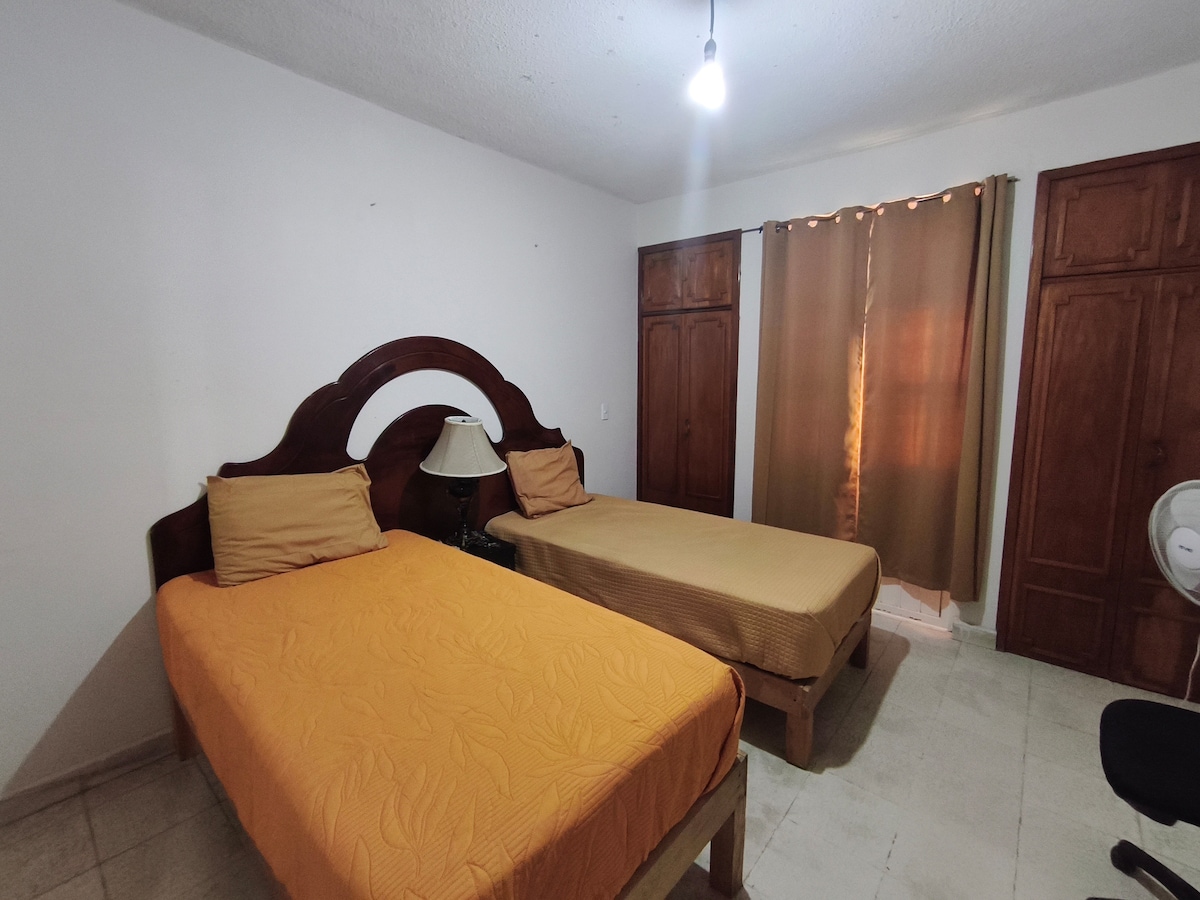 Amplio y moderno, ideal para familias, viajes de trabajo, bodas, turistas o grupos!, bien equipado, con 3 habitaciones (11 camas) ideal para estancias largas o cortas, con estacionamiento cerrado, privilegiada ubicación residencial, tranquila y segura, a poca distancia de comercios, parques, zonas deportivas, lavandería, tomas de autobús y bares, a 7 min del centro histórico de la ciudad, salidas rápidas a todos lados! FACTURAMOS!